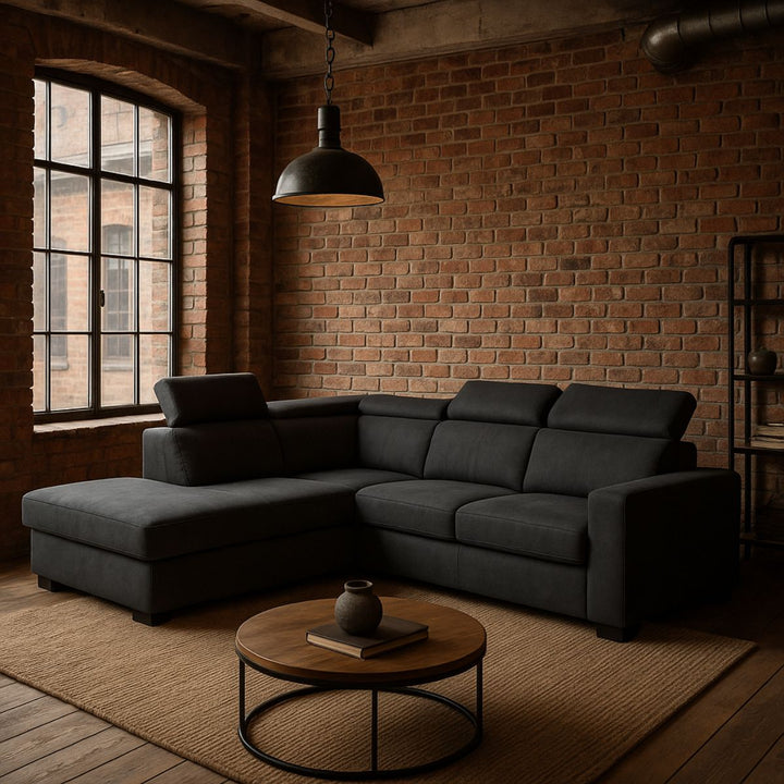 ALINEA Canapé Origano d'angle gauche convertible avec coffre en tissu doux - gris ardoise