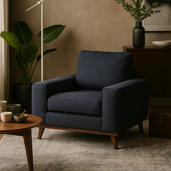 ALINEA- Fauteuil Picabia en tissu bleu calabrun