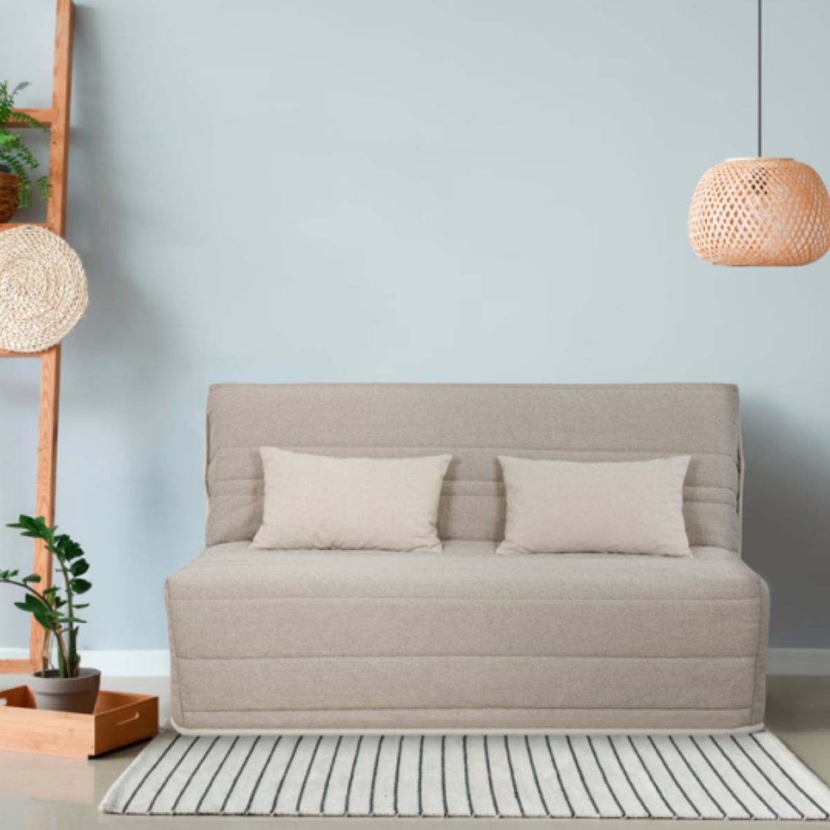 Équipée d’un cadre à lattes multiples, la banquette se déplie facilement pour laisser place à un véritable lit 140x190 cm. Elle répondra parfaitement aux besoins de ceux qui recherchent une solution fonctionnelle, rapide à installer et confortable au quotidien.