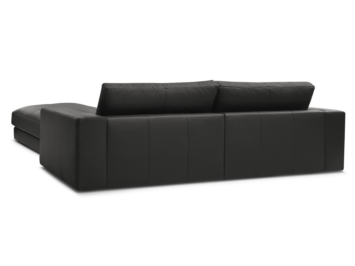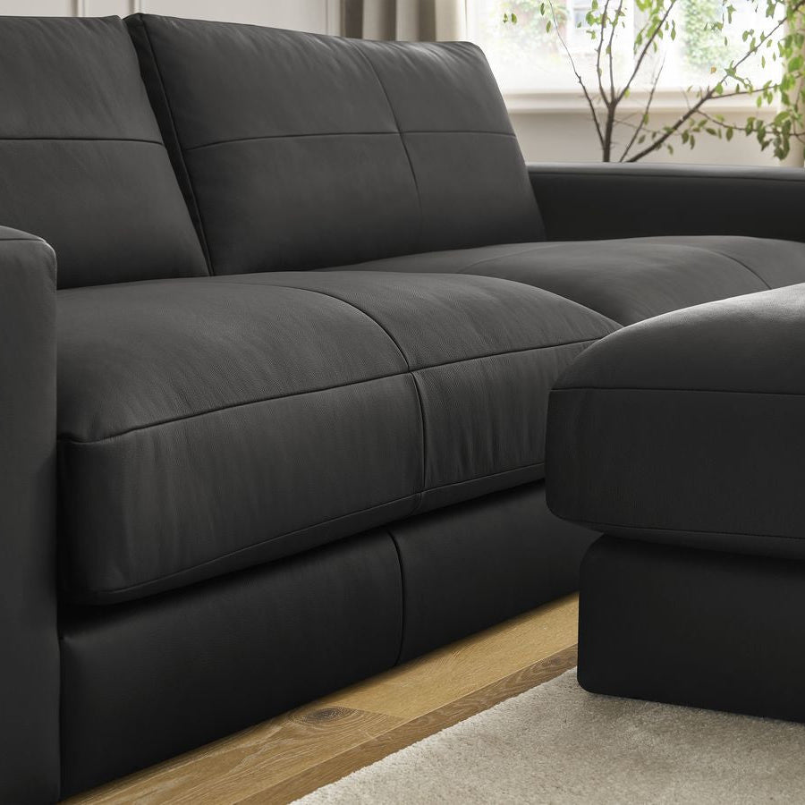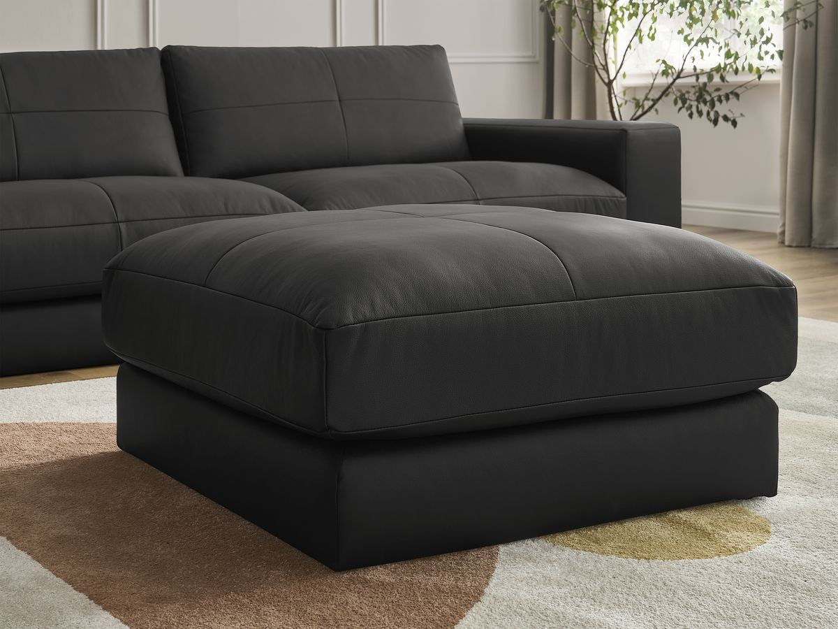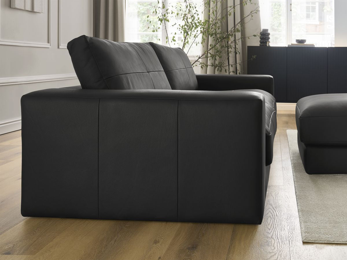 Canapé BOBOCHIC droit fixe 3 places LEONARD cuir de vache avec pouf noir