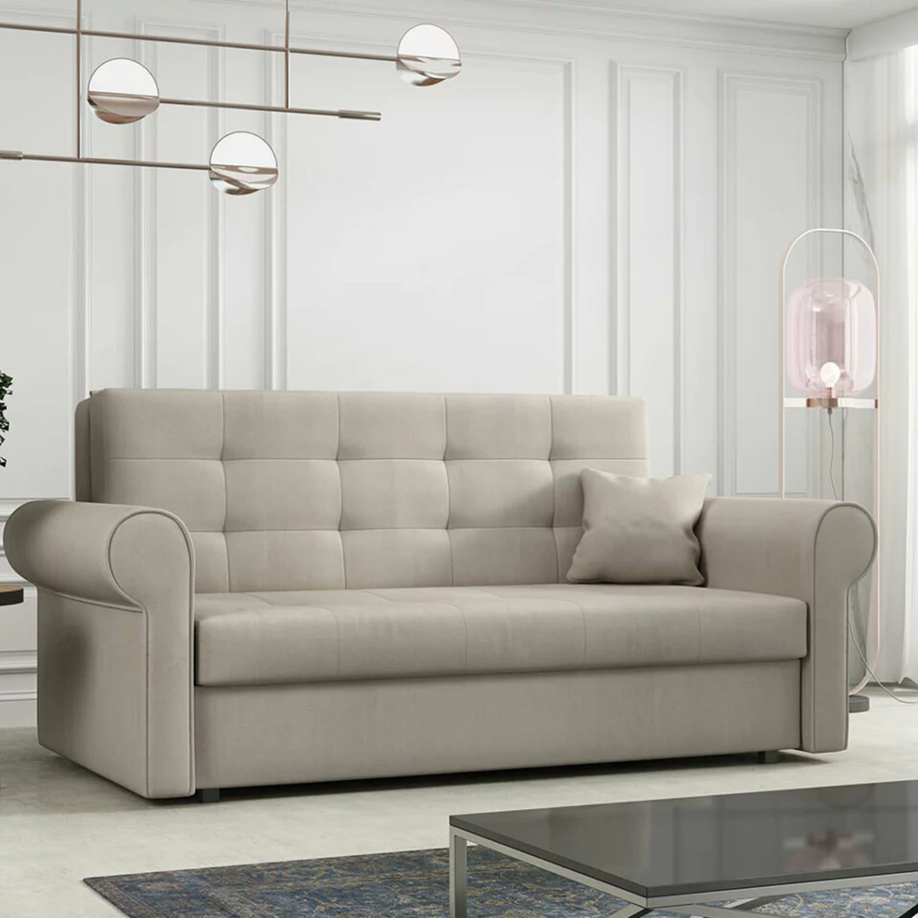 Alliez confort, praticité et modernité avec le canapé convertible Columbus 129 en tissu Mono 232. Son design compact et fonctionnel en fait une solution idéale pour les espaces optimisés, tout en offrant un véritable couchage confortable au quotidien ou pour vos invités.