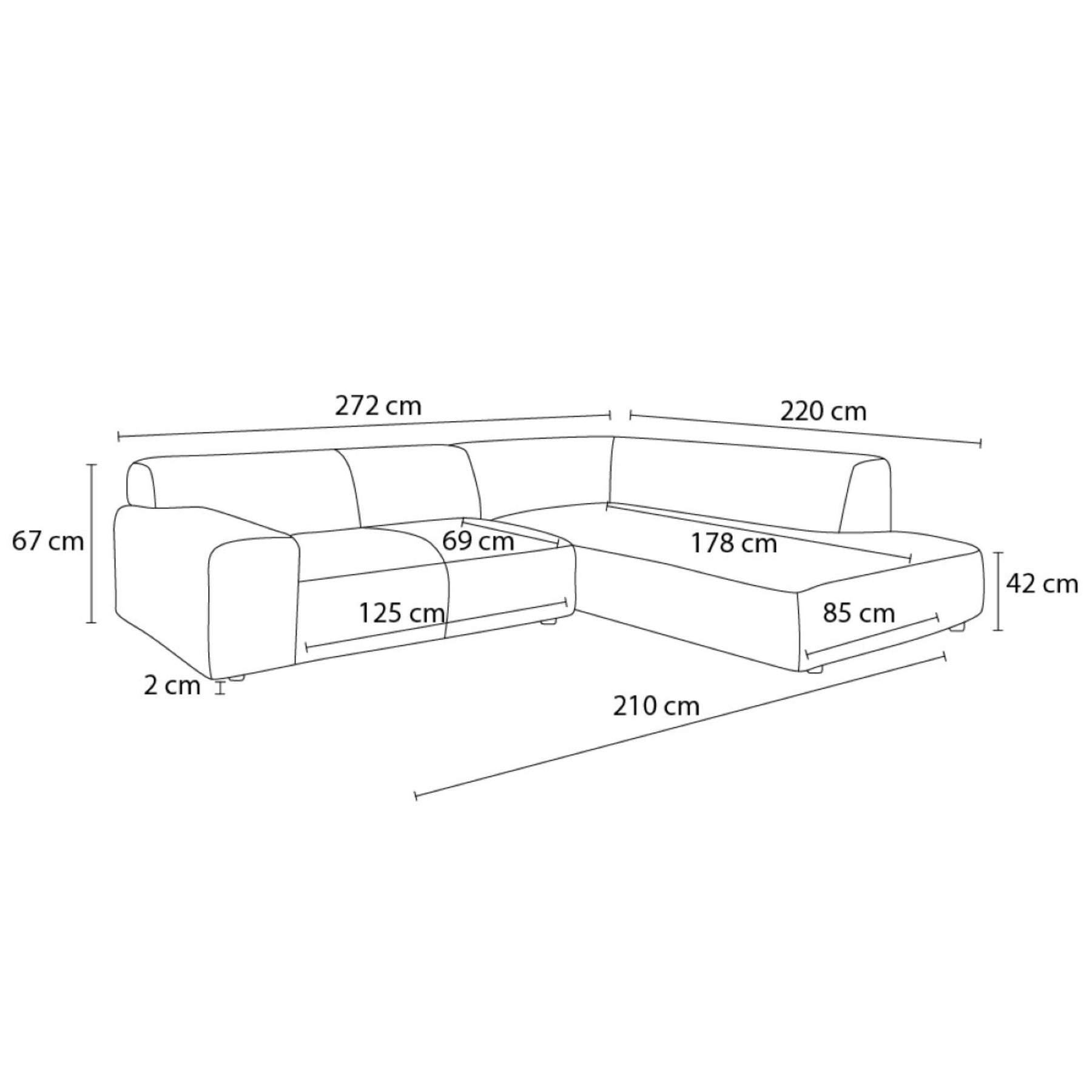 • Largeur d’assise : 210 cm