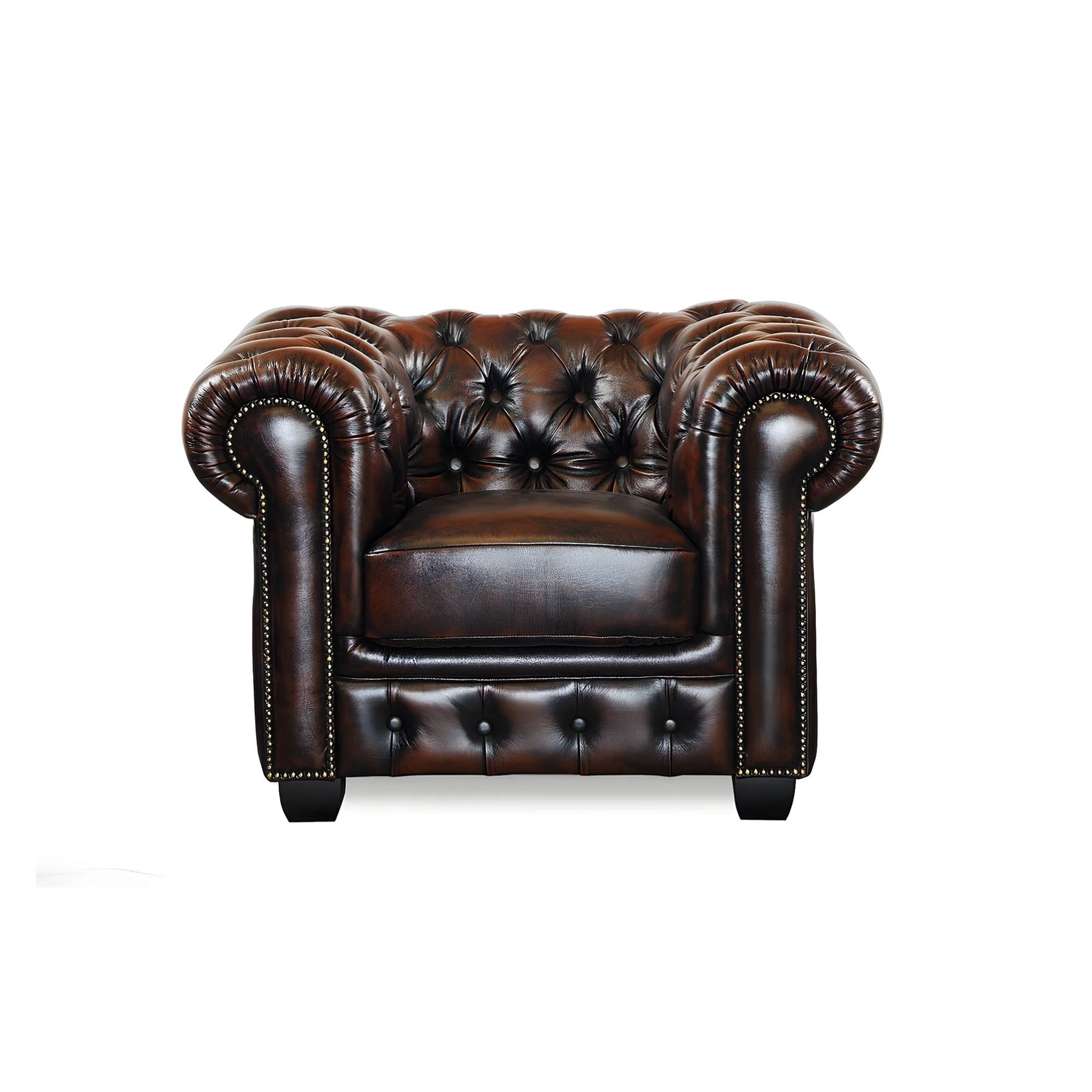 Fauteuil chesterfield LINEA SOFA Brenton 100% cuir de buffle Marron reflets châtains