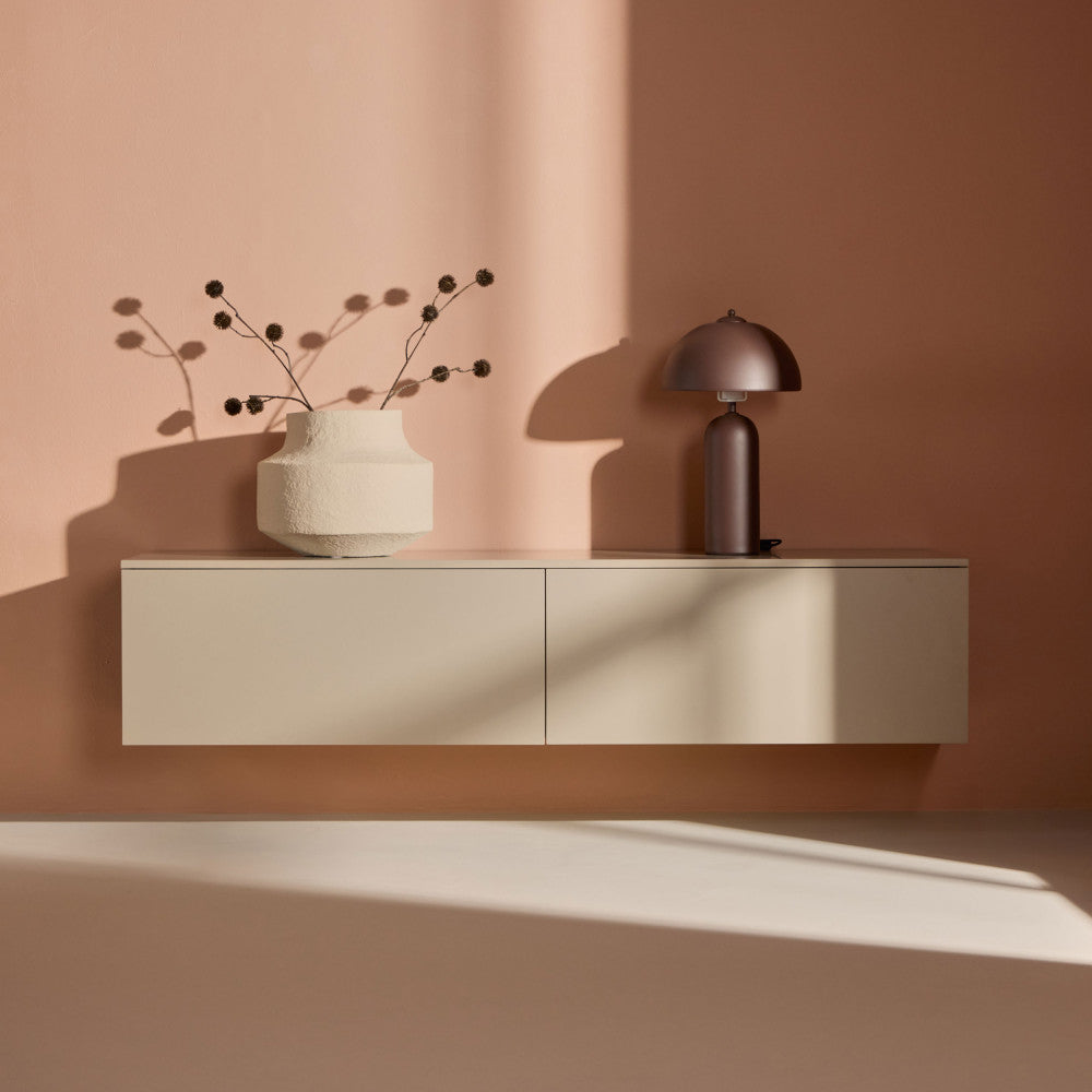 Meuble TV suspendu DRAWER Frihamn 2 tiroirs en bois L160cm beige