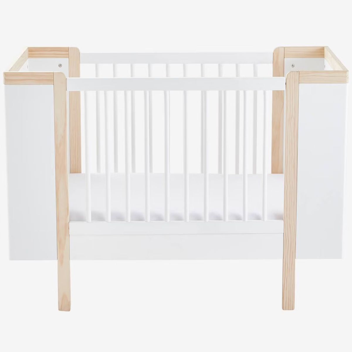Le lit bébé transformable VERTBAUDET Noé blanc allie design scandinave épuré et fonctionnalité intelligente pour accompagner bébé dès la naissance. Grâce à son système de barreaux amovibles, il se transforme facilement en banquette, permettant à votre enfant de sortir de son lit tout seul quand il grandit. Son sommier réglable sur 3 hauteurs offre un confort adapté à chaque étape, tandis que les finitions en blanc lumineux s’intègrent naturellement dans tous les styles de chambre.