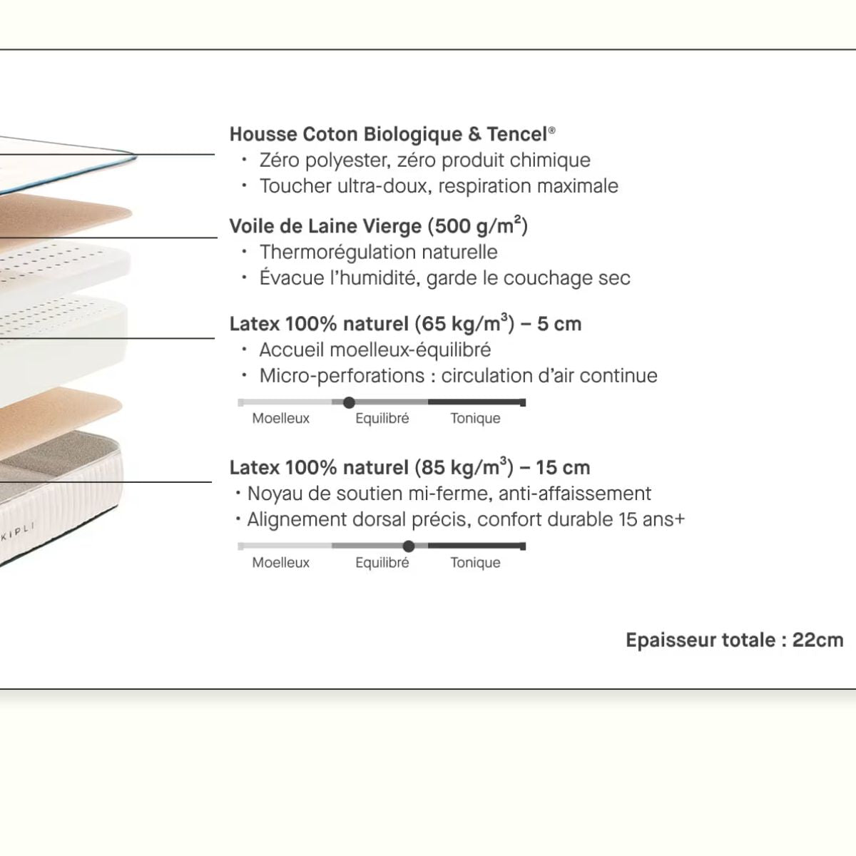 🌿 Latex 100 % naturel, sans mousse chimique