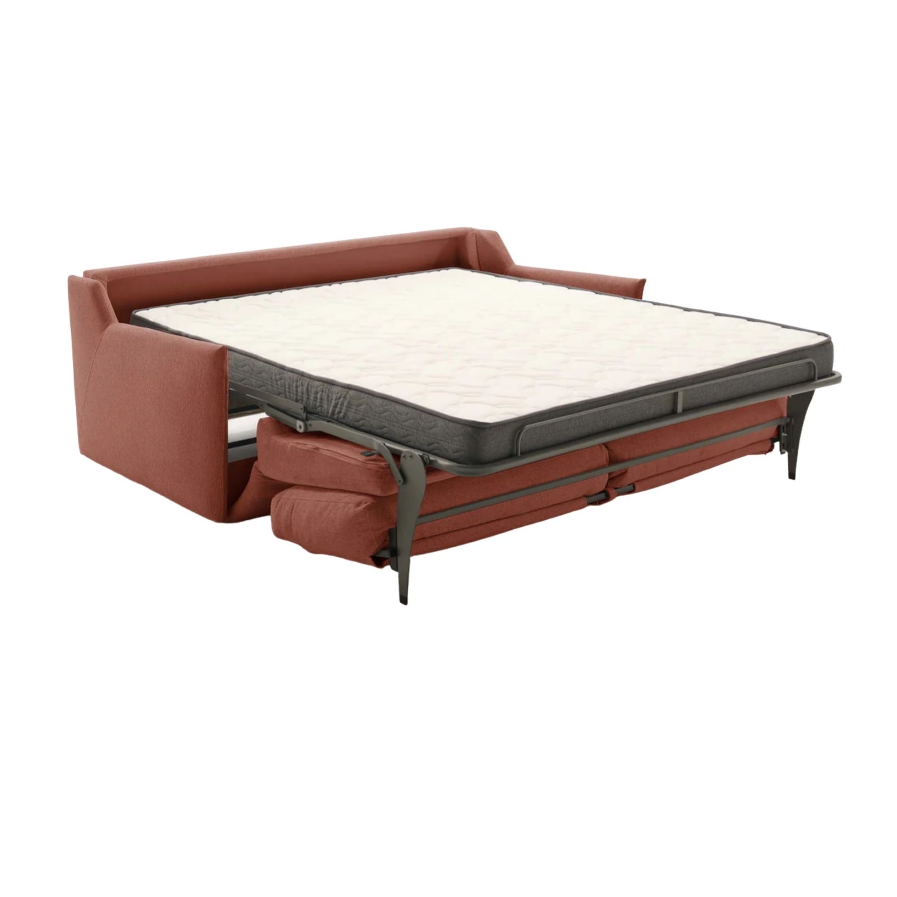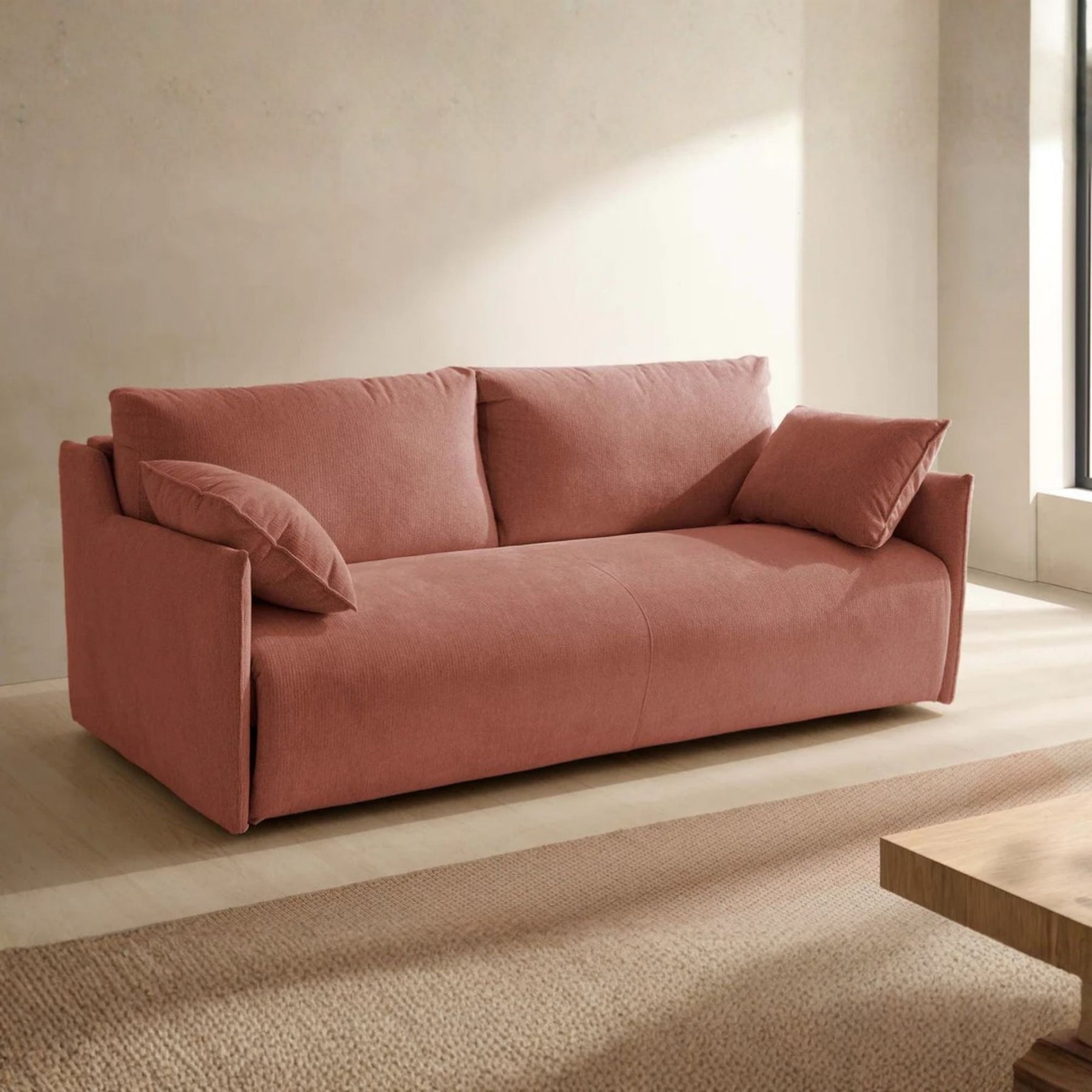 Apportez chaleur et fonctionnalité à votre salon avec le canapé convertible ATHÈNES de CONVERTIBLE CENTER. Son design contemporain aux lignes épurées et son velours texturé couleur rouille créent une ambiance cosy et élégante, parfaite pour un intérieur accueillant et moderne.