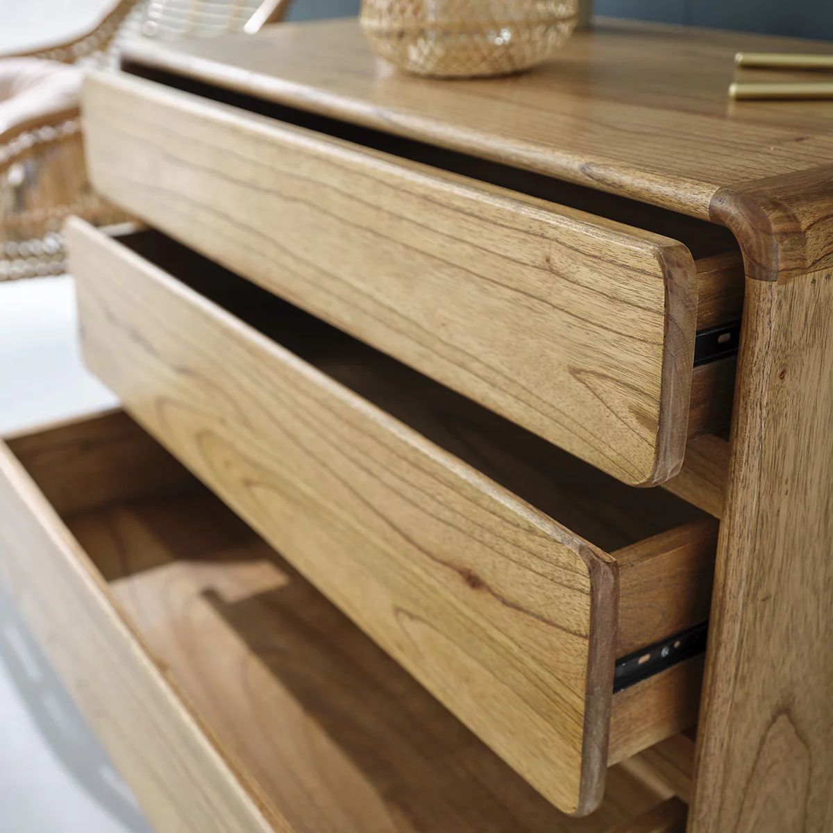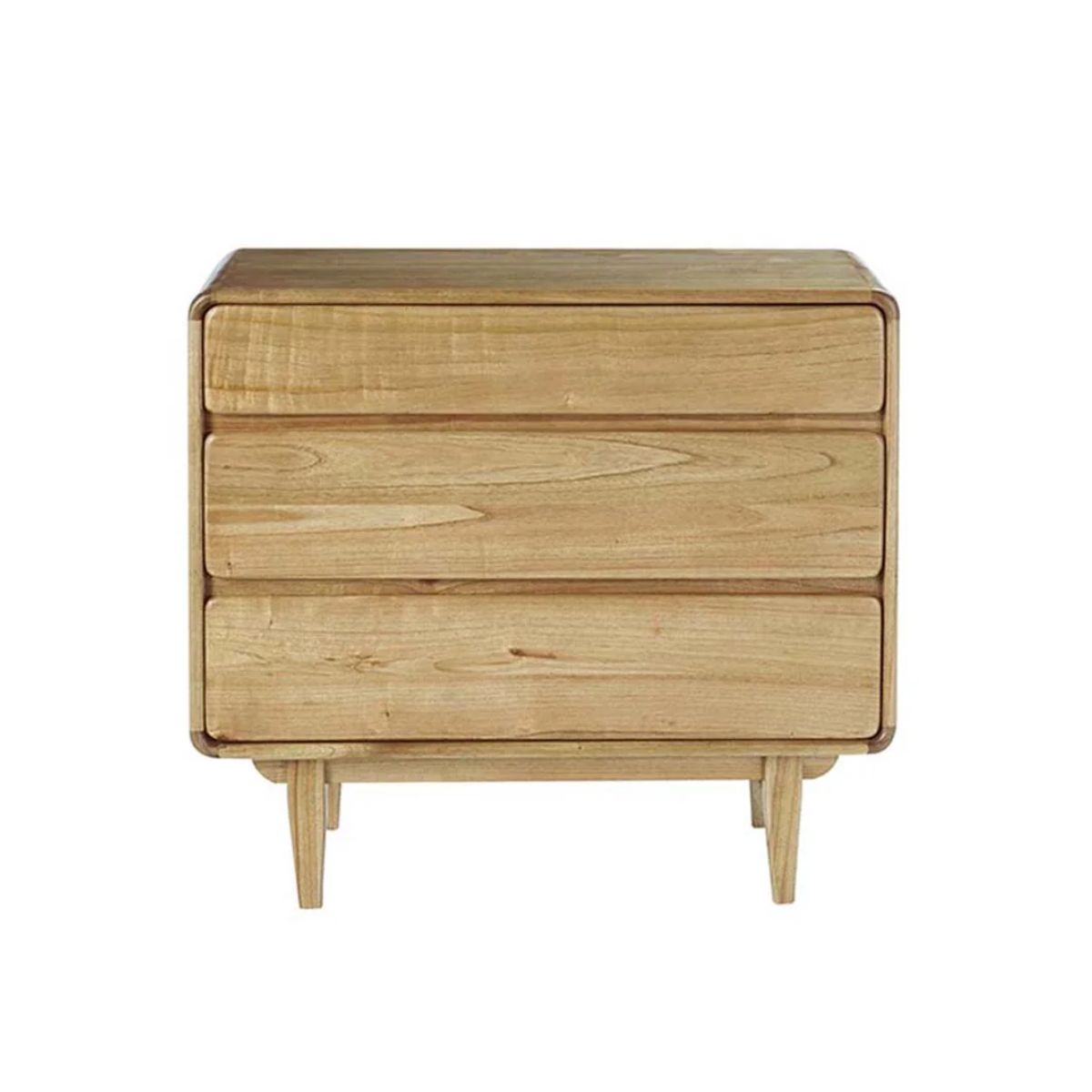 Apportez chaleur et élégance à votre intérieur avec cette commode en bois de mindi massif au style vintage et lignes arrondies. Avec ses 3 tiroirs spacieux, elle devient un rangement pratique pour votre linge, vos objets personnels ou votre vaisselle, s’adaptant aussi bien à une chambre qu’à un séjour. Les pieds droits carrés et l’essence naturelle du bois créent un charme rétro revisité et une atmosphère accueillante. Le meuble est artisanalement fabriqué à partir de bois issu de forêts éco-gérées, garantissant robustesse et durabilité dans le temps.