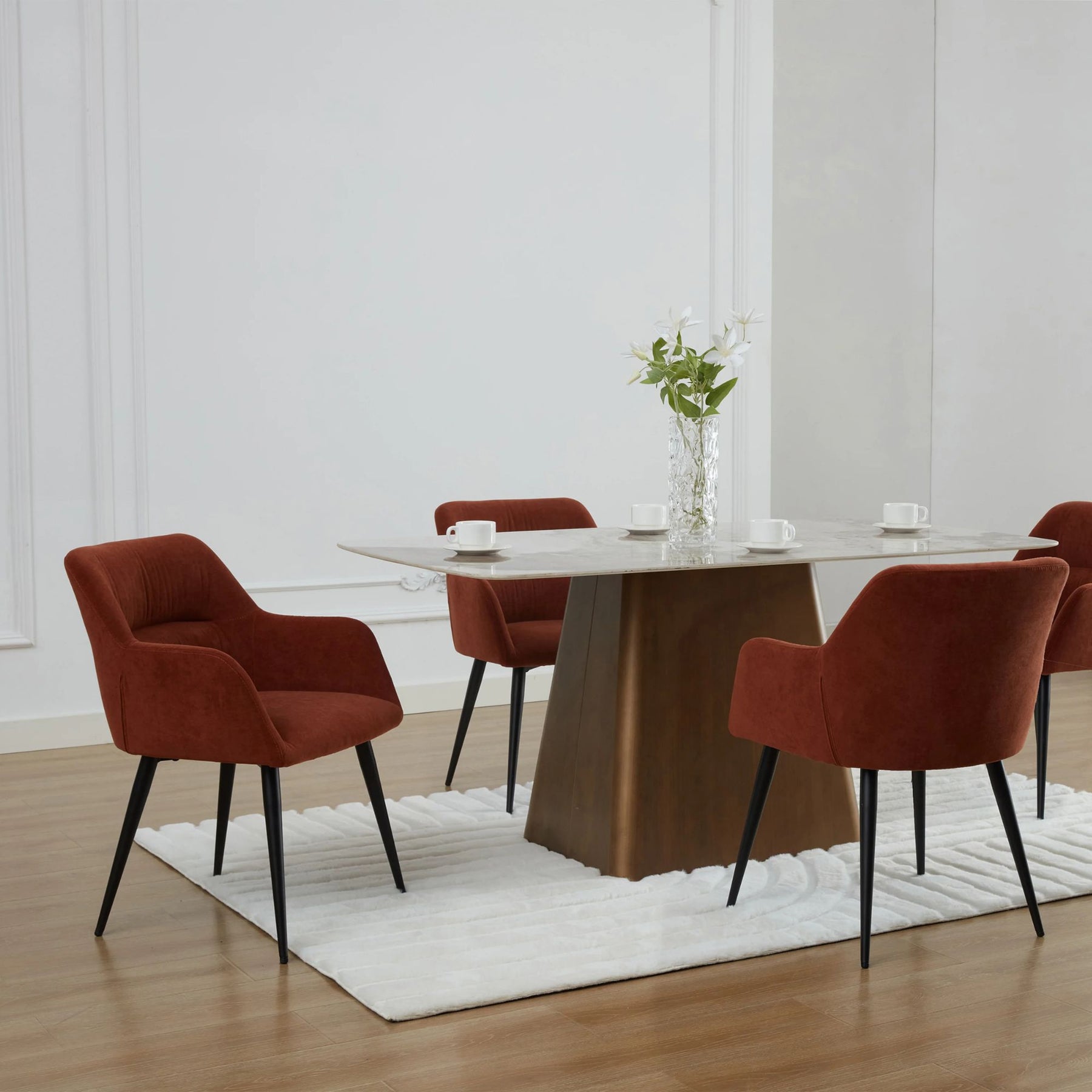 Avec leur silhouette actuelle et leur teinte chaleureuse, les chaises Heka signées VENTE UNIQUE sont parfaites pour créer une ambiance cosy et contemporaine autour de votre table. Leur assise en tissu terracotta, associée à un piètement en métal noir, apporte immédiatement du caractère à une salle à manger ou une cuisine moderne.