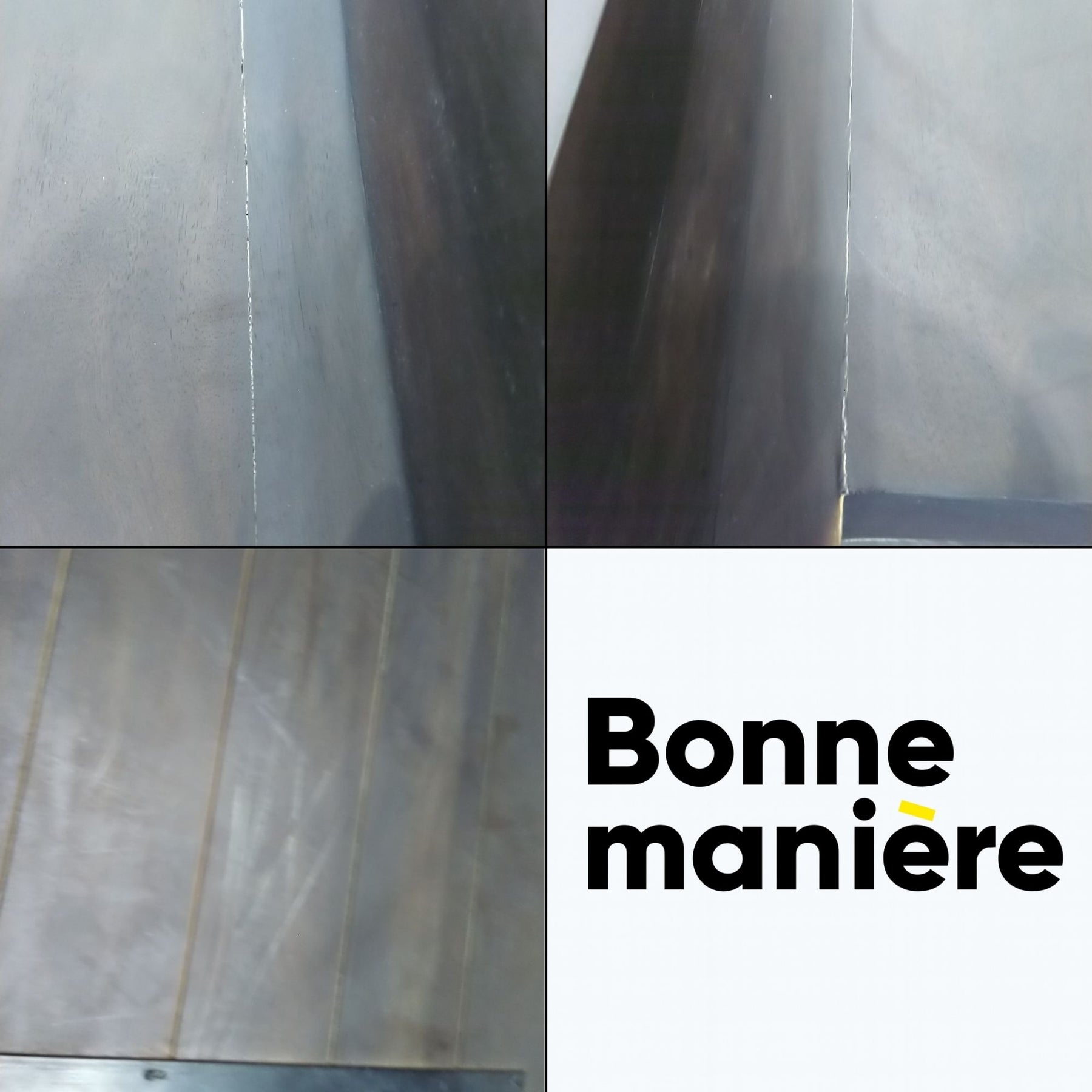 Défaut : fissure du vernis (mais pas du bois) sur l'intérieur des pieds (voir photos)