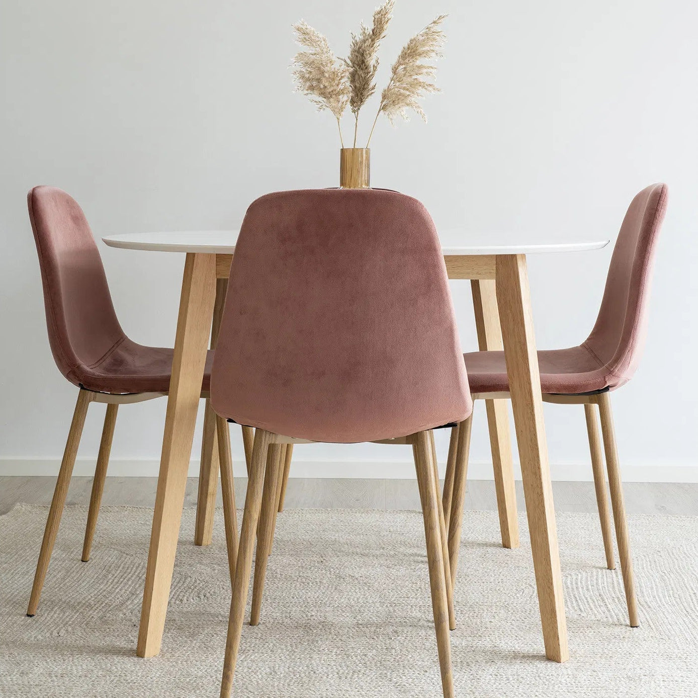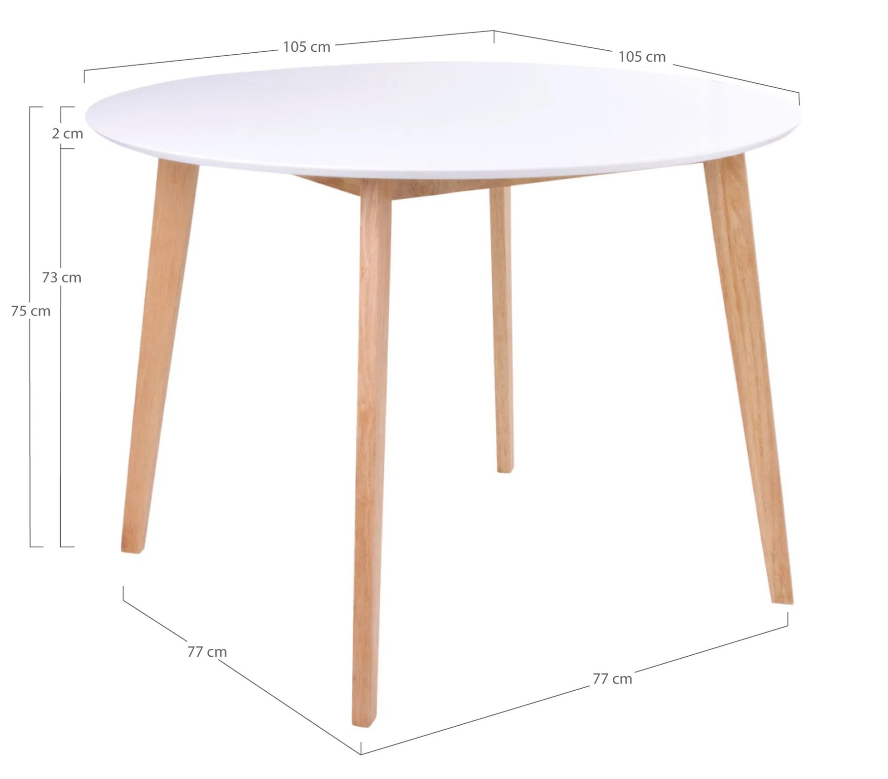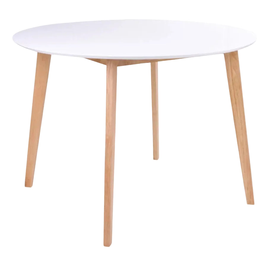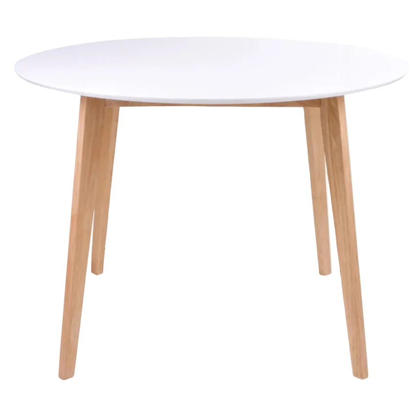 Son plateau blanc en MDF apporte de la clarté à la pièce, tandis que ses pieds en bois naturel (rubberwood) réchauffent l’ensemble et assurent une excellente stabilité. Grâce à son diamètre bien pensé, la table Vojens accueille confortablement jusqu’à 4 personnes, tout en restant idéale pour les espaces de petite ou moyenne taille.
