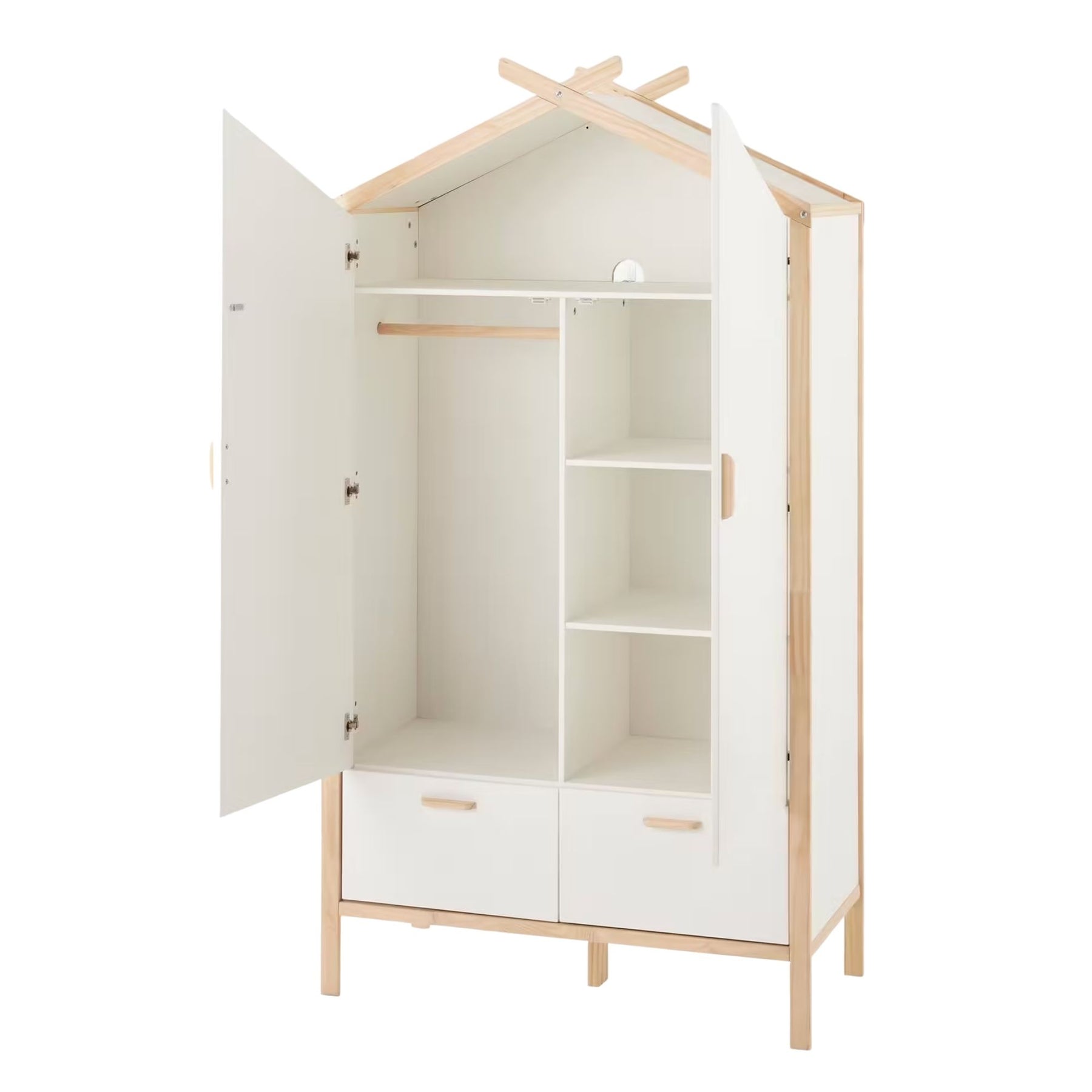 L’armoire cabane Robinson blanc mate de VERTBAUDET apporte une touche de fantaisie créative à la chambre de votre enfant tout en offrant beaucoup de rangement pratique. Sa forme en cabane stimule l’imaginaire, et sa configuration astucieuse combine penderie, étagères et tiroirs pour une organisation complète des vêtements et accessoires.