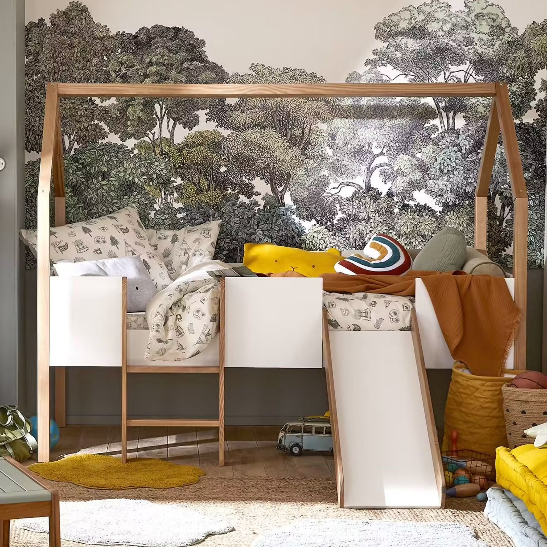 Type : Lit enfant cabane ludique avec toboggan amovible