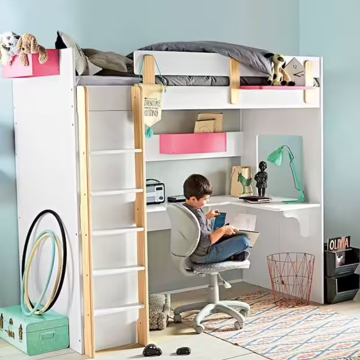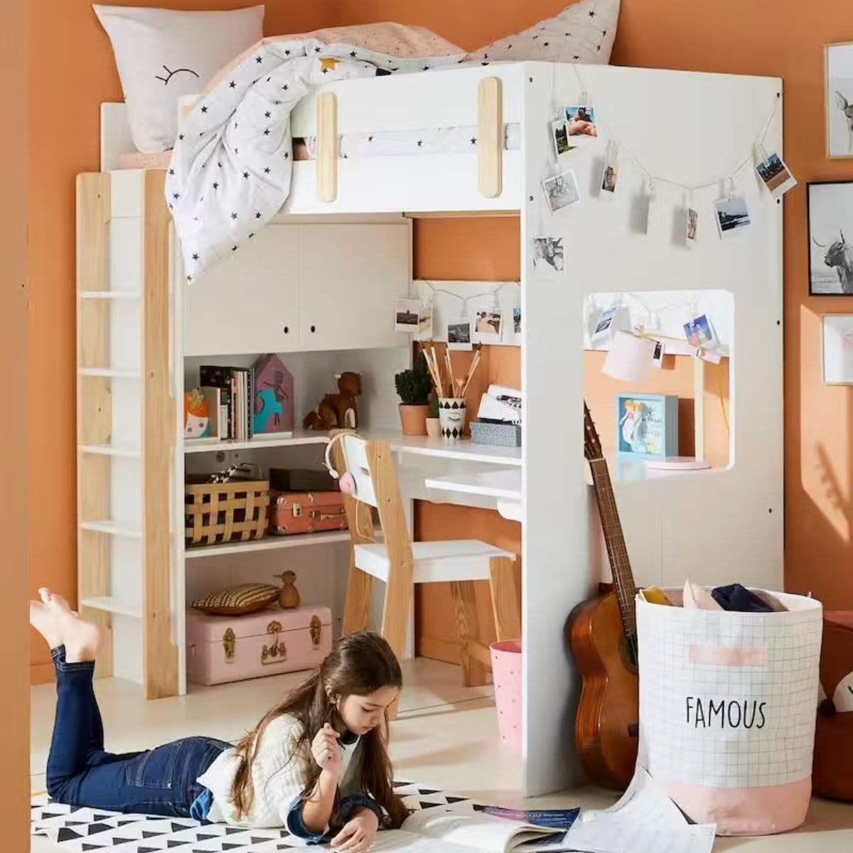 Lit mezzanine enfant gain de place avec espace bureau intégré