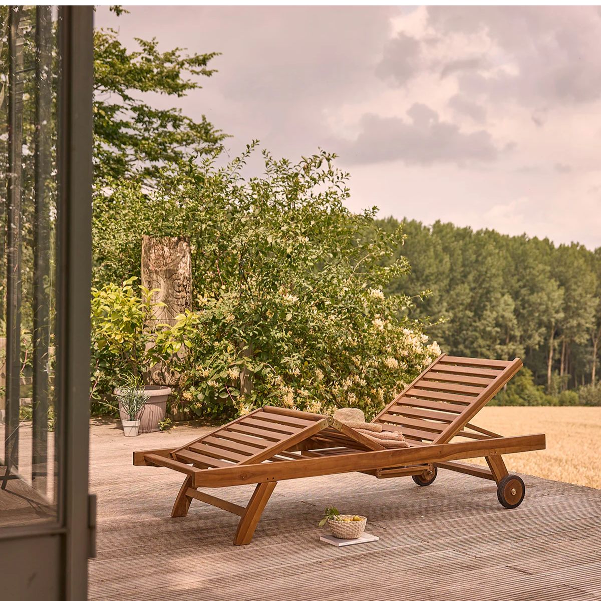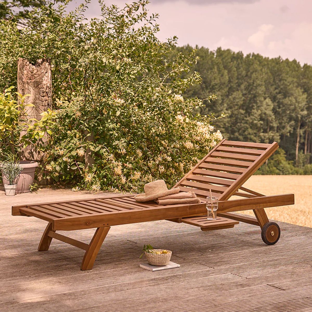 On aime ce bain de soleil et son look résolument moderne : parfait pour chiller avec style en terrasse ! Ce transat en teck séduit par ses lignes droites, qui lui confèrent une allure épurée. Il vous offre tout le confort attendu grâce à son dossier inclinable en 5 positions et sa table latérale coulissante qui vous permet de poser livres ou autres petites choses... On note aussi les roues garnies de caoutchouc, qui permettent de le déplacer aisément. Fabriqué en teck huilé, ce bain de soleil affiche une belle couleur miel et bénéficie de la protection de l'huile de teck pour traverser les saisons avec brio !