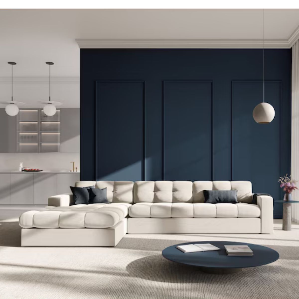 - Modèle : Canapé d'angle gauche velours, "Justin", 4 places