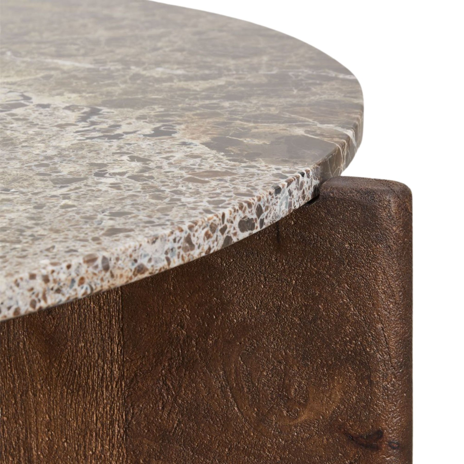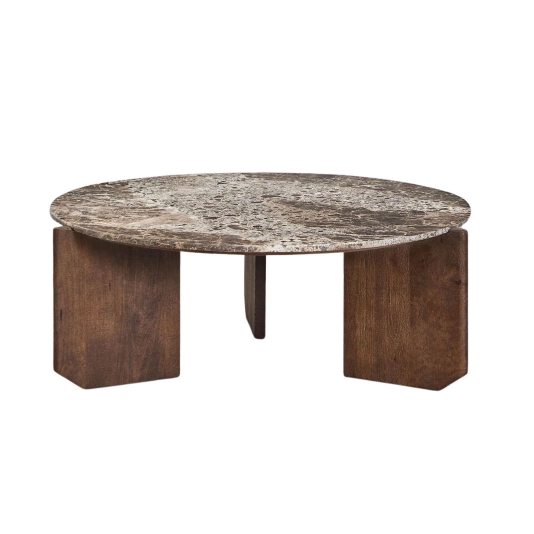 Table basse ronde SKLUM Lavinia en pierre naturelle et bois de manguier Ø85 cm