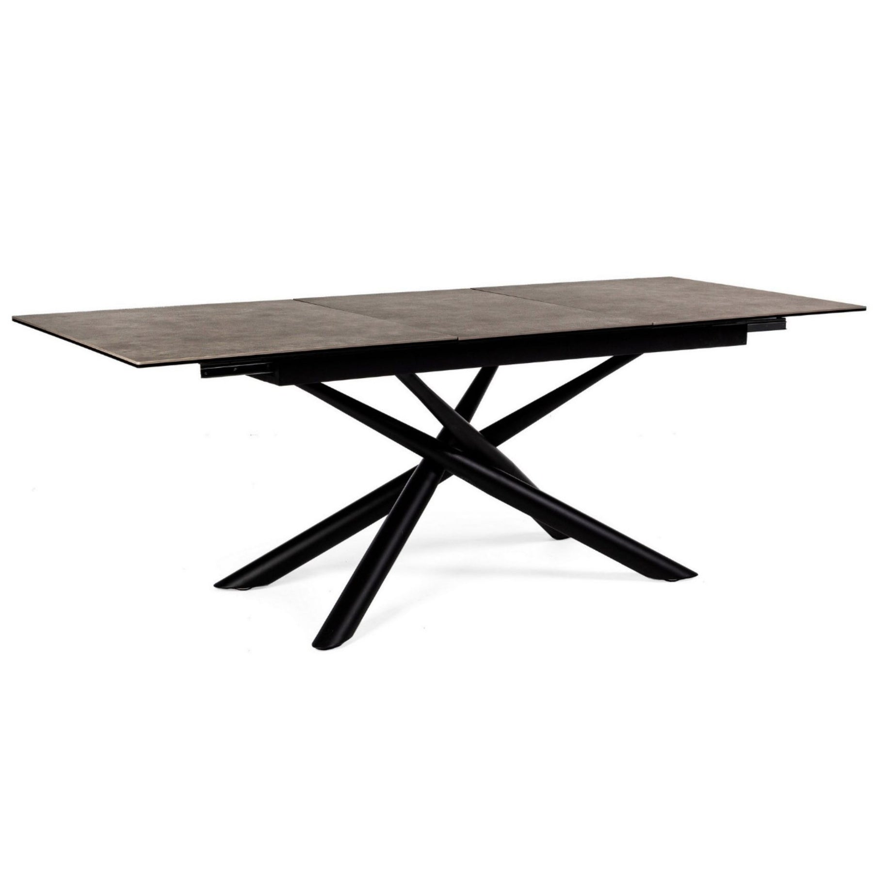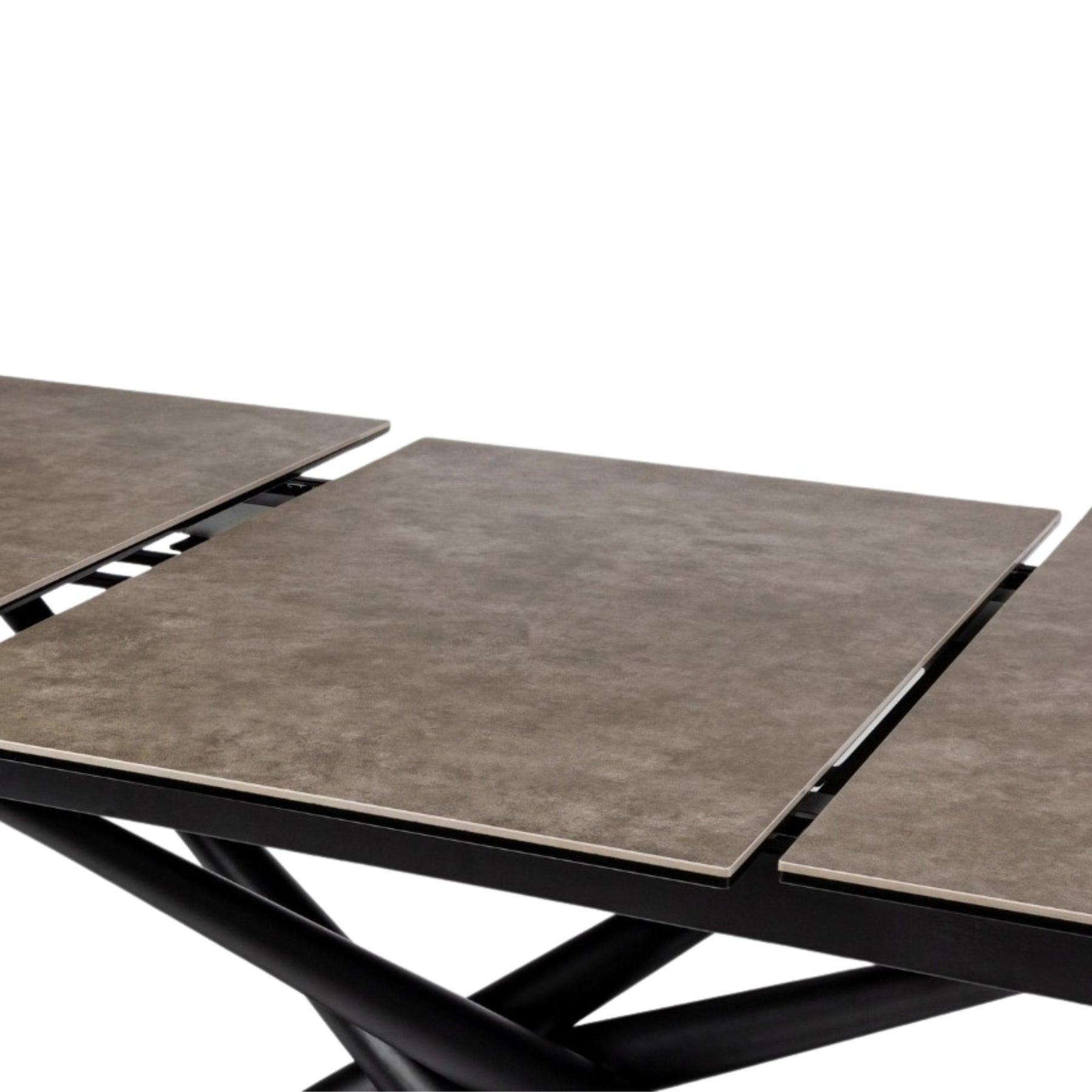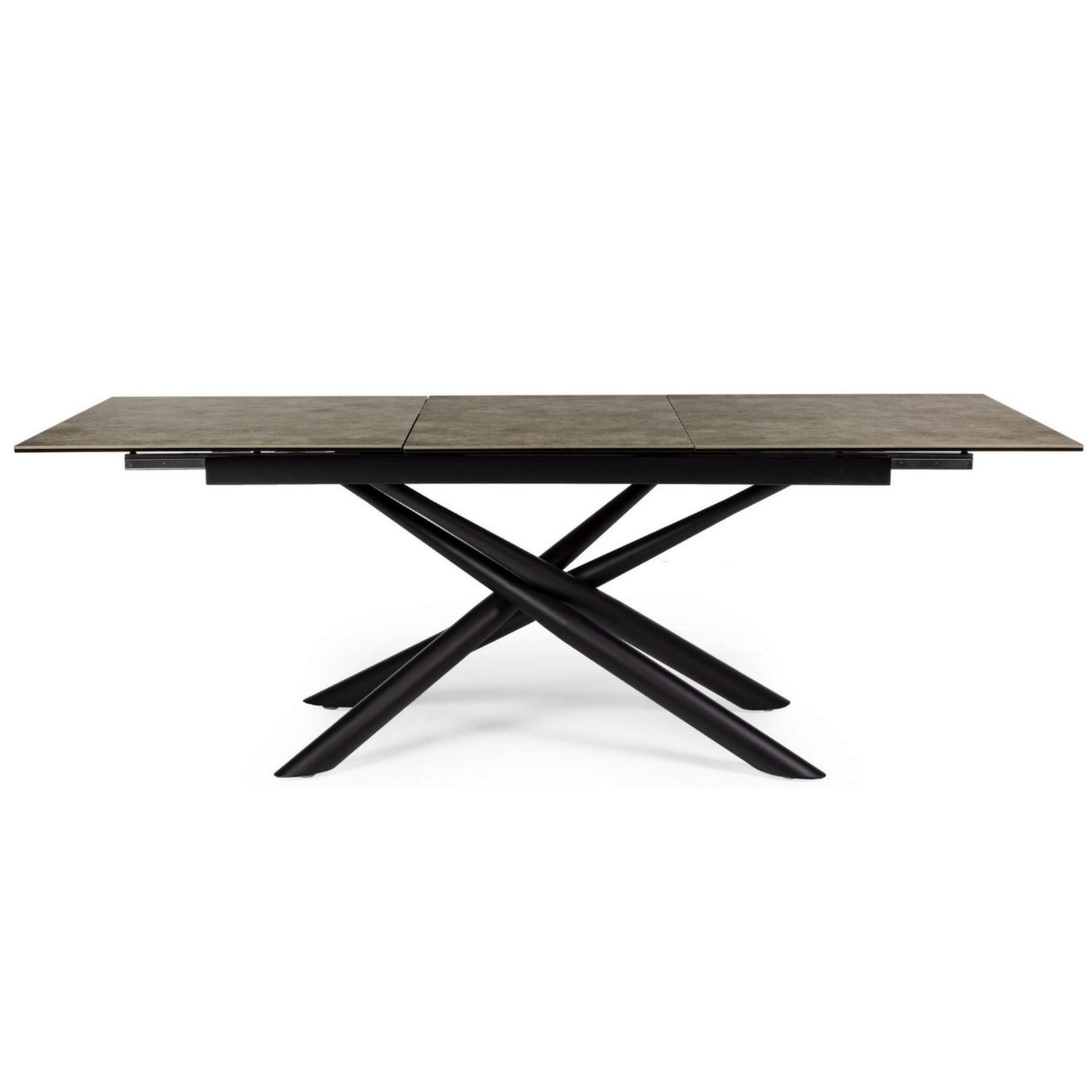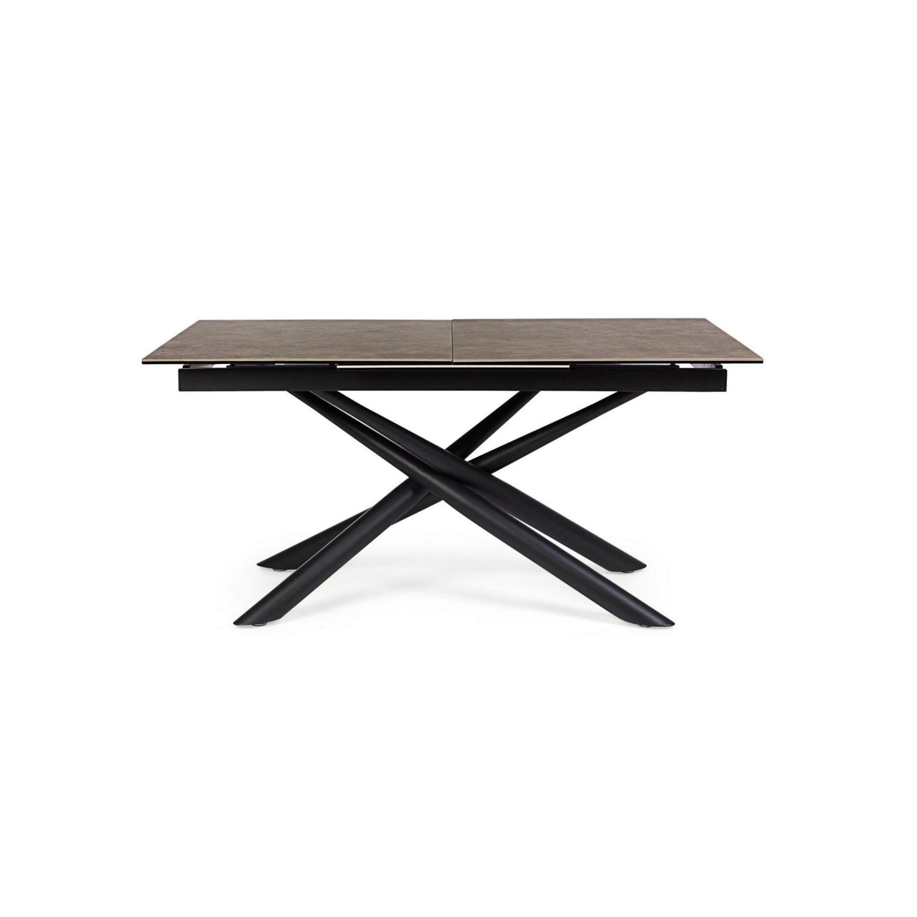 Table extensible LES TENDANCES Seray 6 à 10 places 160 à 220 cm en céramique marron et acier noir