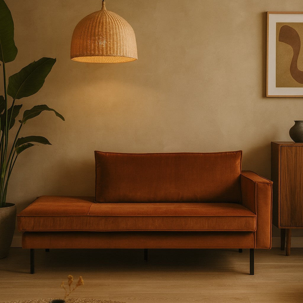 Méridienne DRAWER Bronco droite en velours Couleur Rouille - Léger défaut