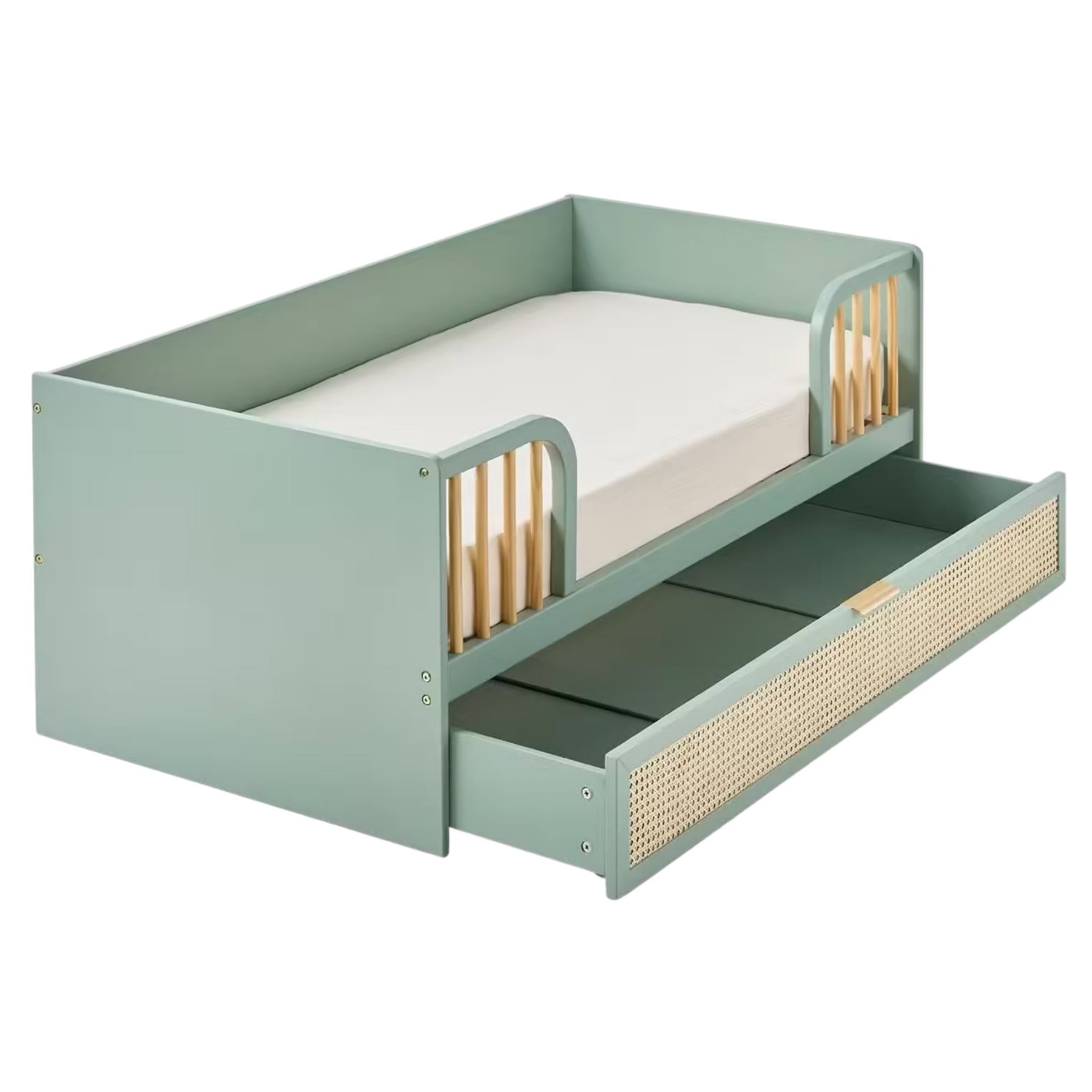 Lit enfant VERTBAUDET Poésie 70x140 cm avec tiroir en cannage vert