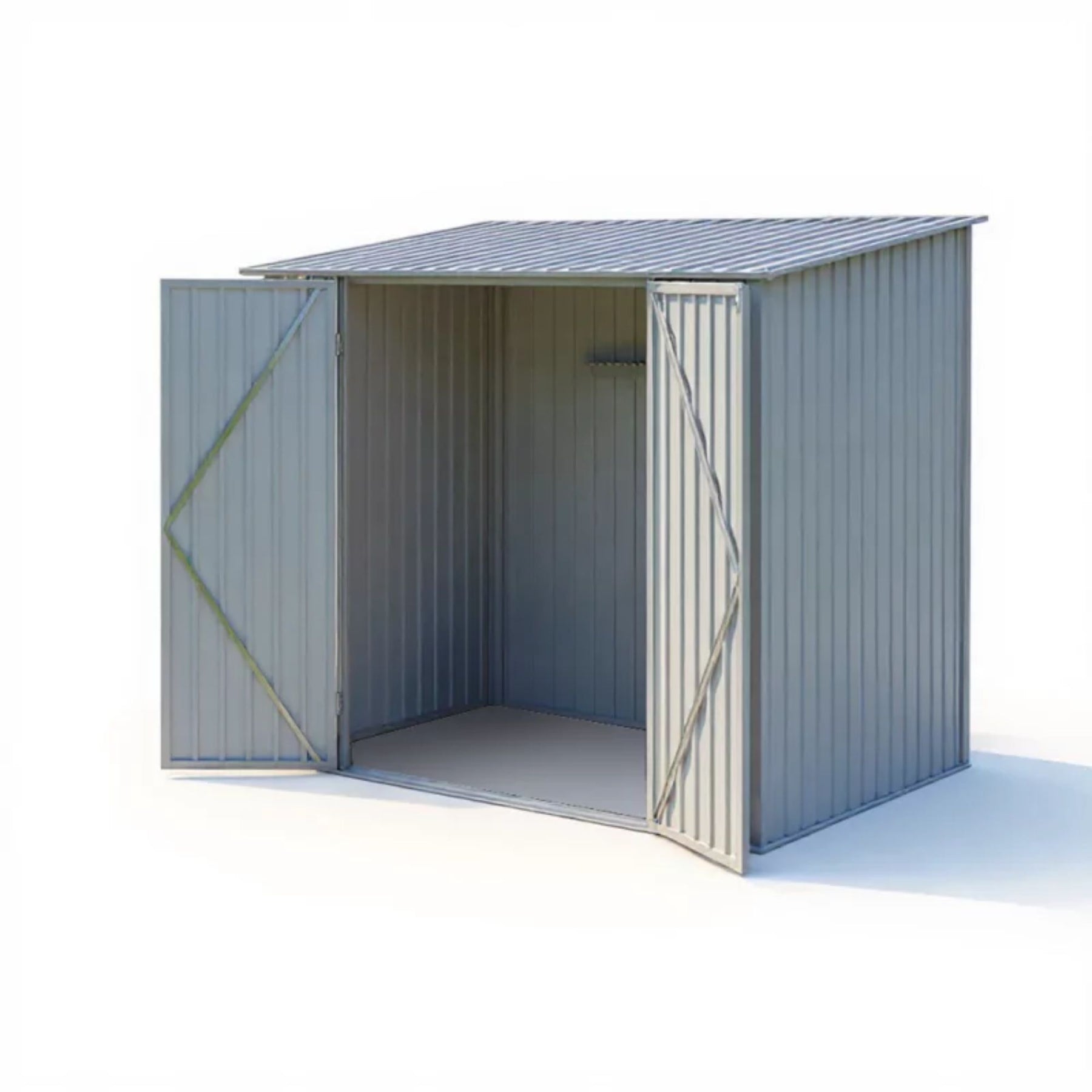 Sa structure en acier galvanisé assure une excellente résistance aux intempéries et ne nécessite aucun entretien particulier. Le toit monopente facilite l’écoulement de l’eau et permet une installation pratique, même contre un mur ou dans un espace restreint. Les grilles d’aération arrière garantissent une bonne circulation de l’air pour garder vos affaires à l’abri de l’humidité.