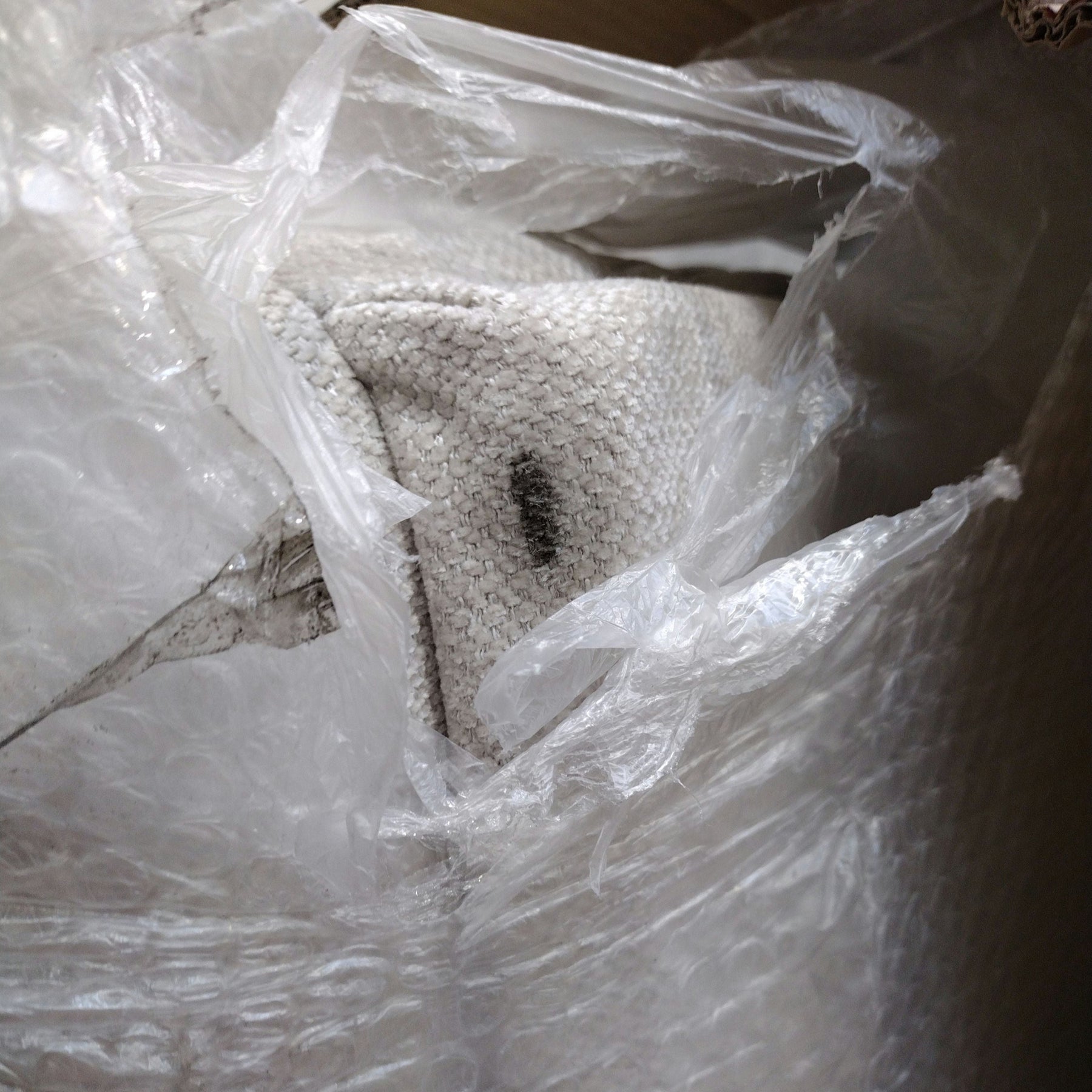 Ce modèle présente une légère tache à l’arrière du canapé survenue pendant le transport (voir photo). Le canapé est neuf et jamais utilisé.