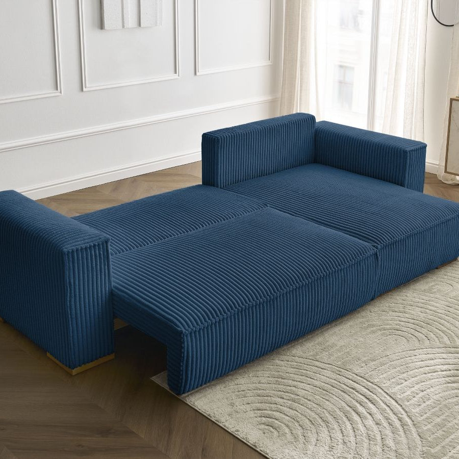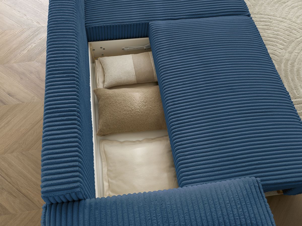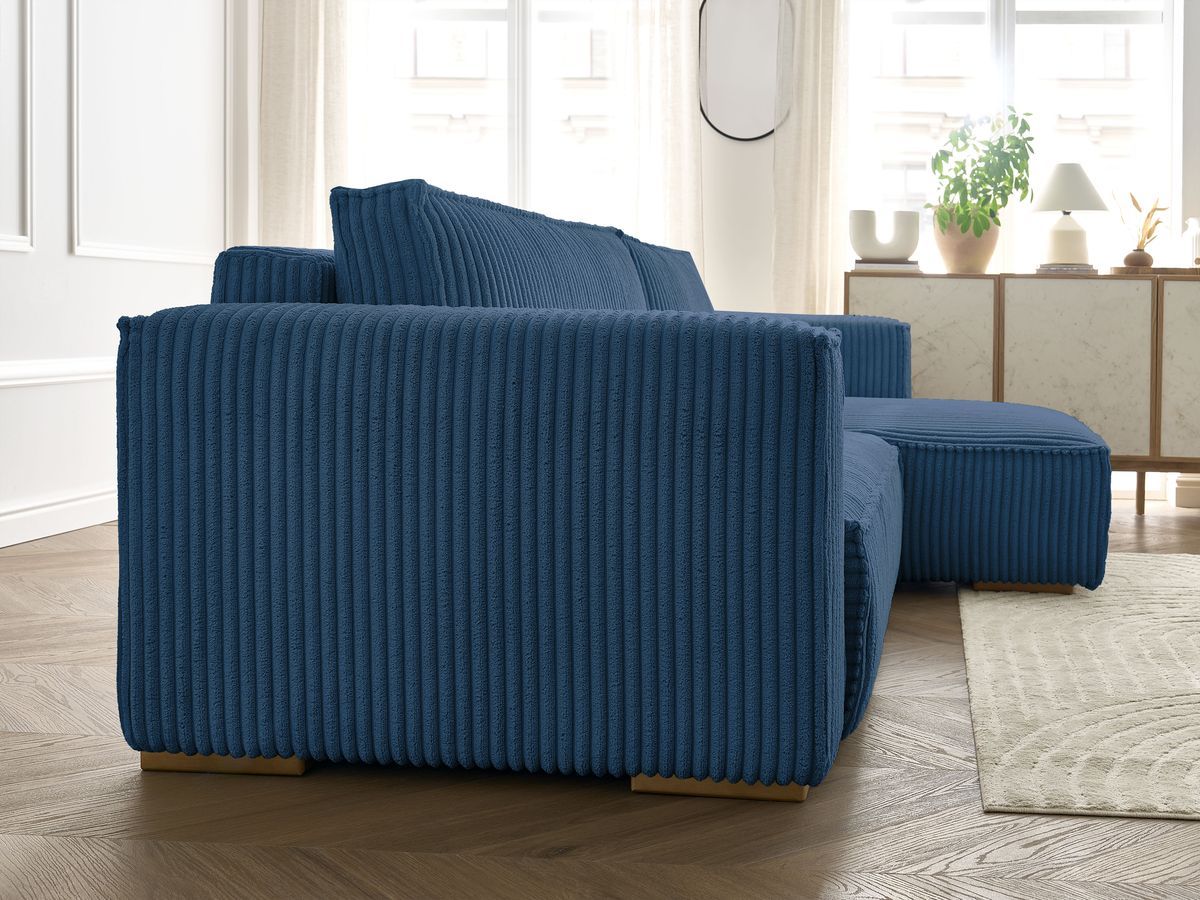 Canapé BOBOCHIC d'angle réversible convertible coffre CHELSEA velours côtelé doux BLEU
