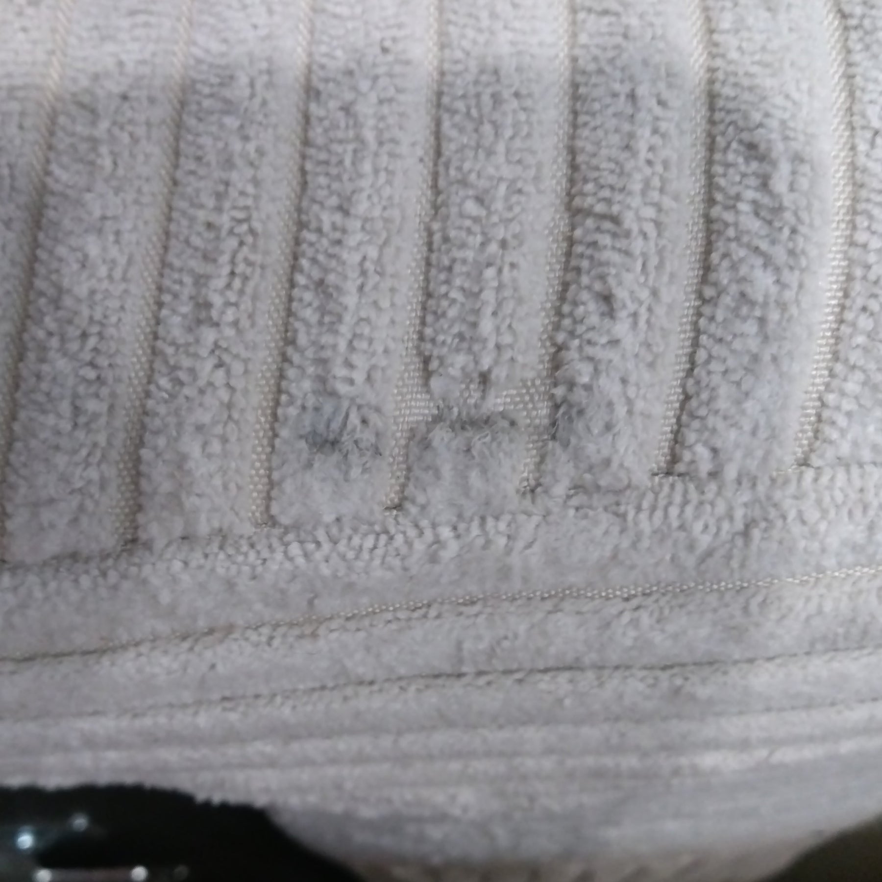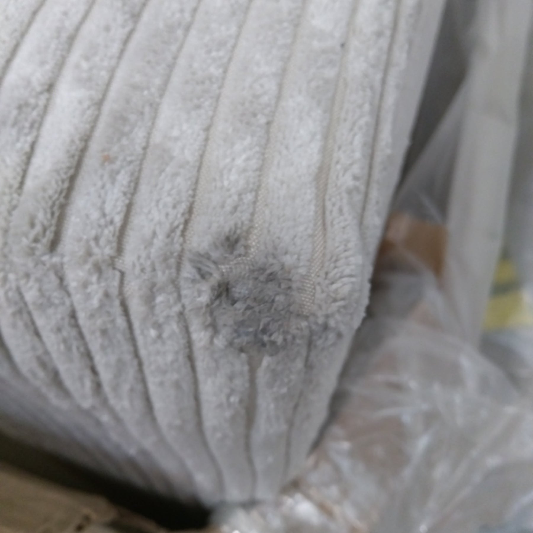 - Défaut : Traces liés au transport aller sur le dossier en haut à droite et sur l'accoudoir (voir photos), peuvent se détacher