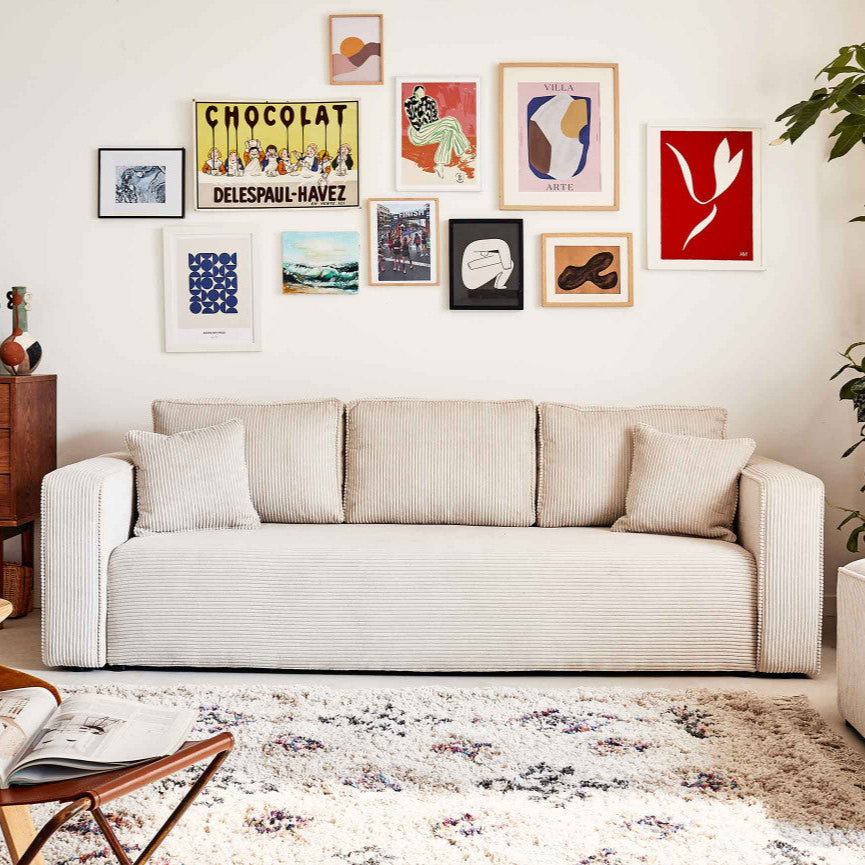 Laissez-vous séduire par Topaze, le canapé 3 places en velours côtelé qui combine style, confort et praticité. Véritable pièce maîtresse du salon, il attire le regard avec ses lignes arrondies, son esprit bohème et son revêtement en velours côtelé doux et texturé.