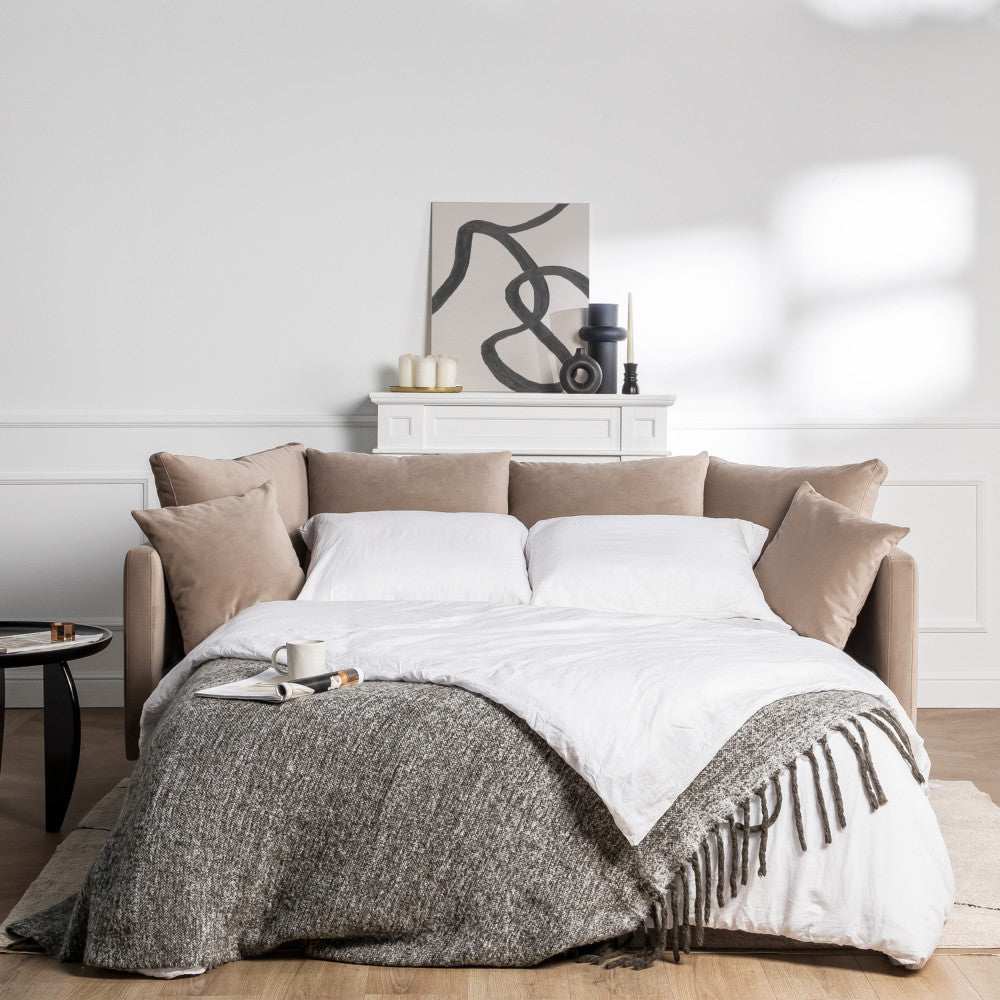 Canapé convertible Drawer Villabon 4 places en velours beige pieds épingles noir