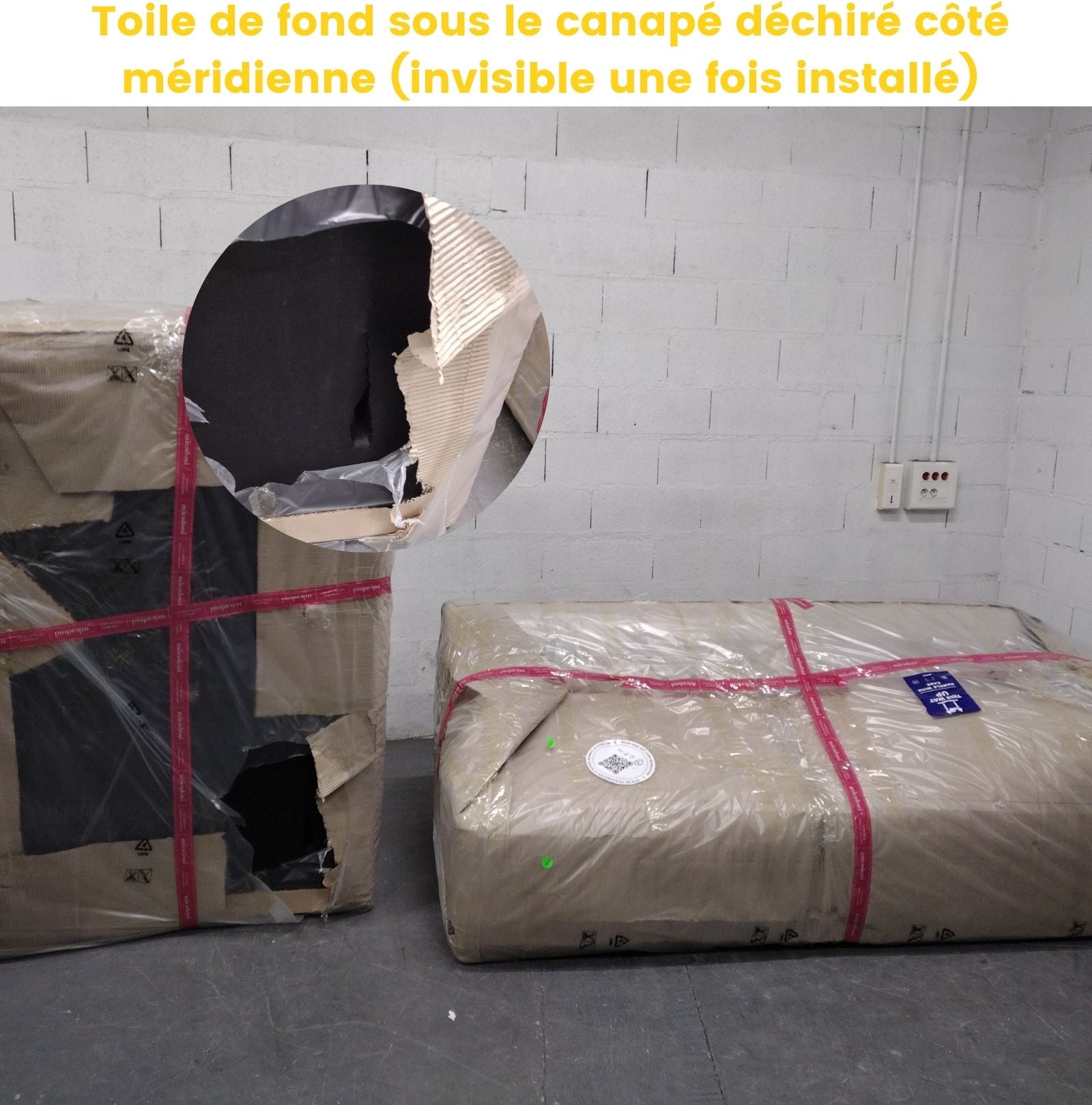 • Défaut: Toile de fond déchirée (invisible une fois le canapé en place)