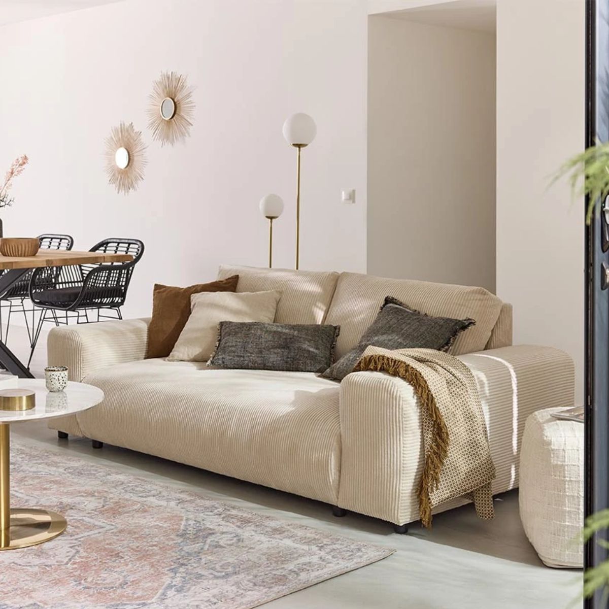 Canapé droit 3 places GARANCE en velours côtelé BESTMOBILIER