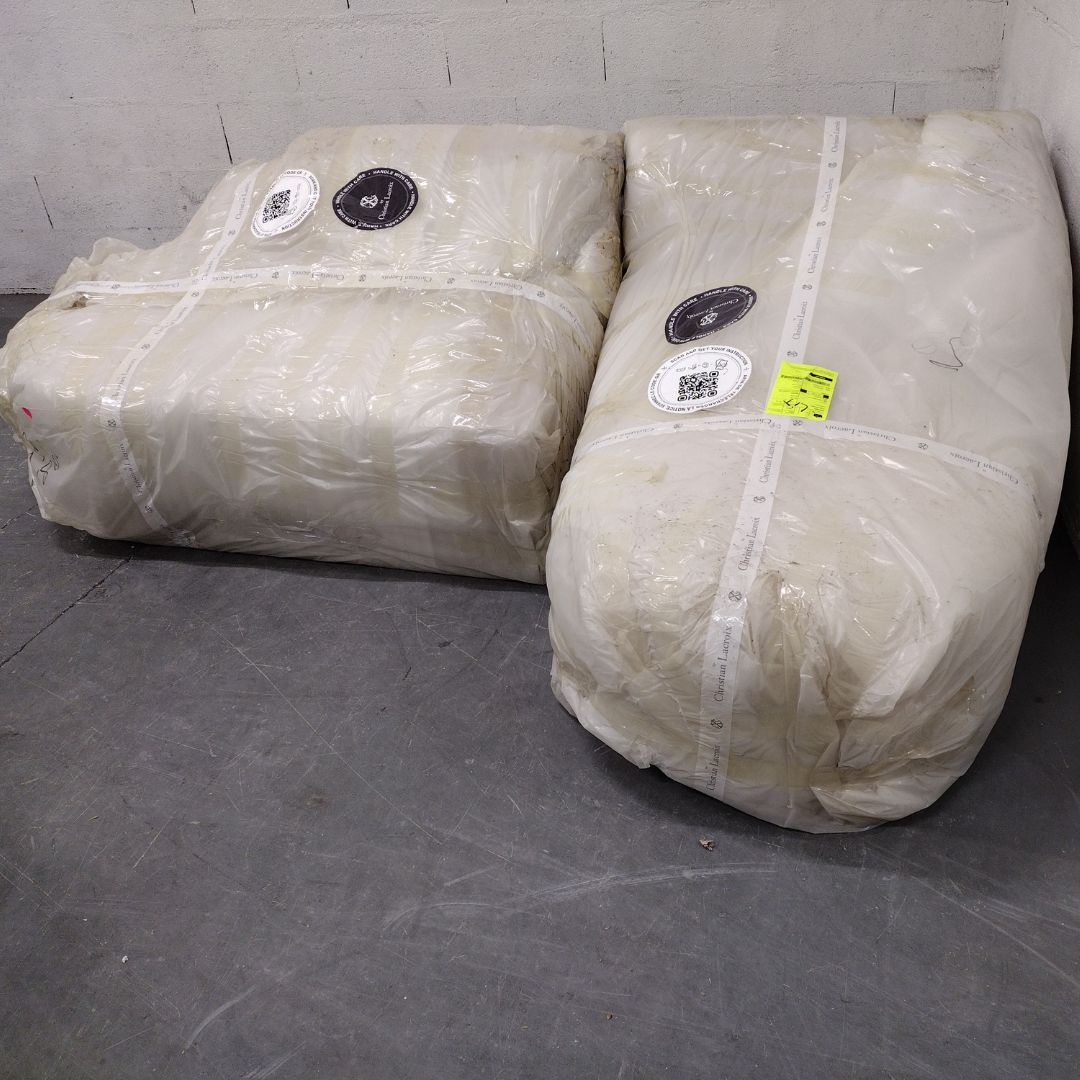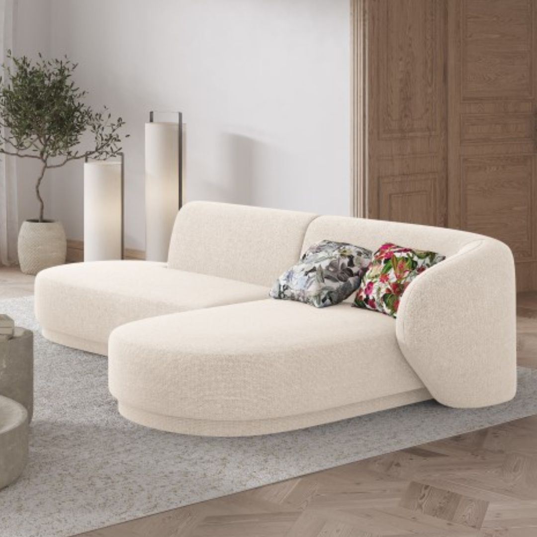 Canapé Lionel d'angle droit modulable 4 places en tissu chenille beige clair