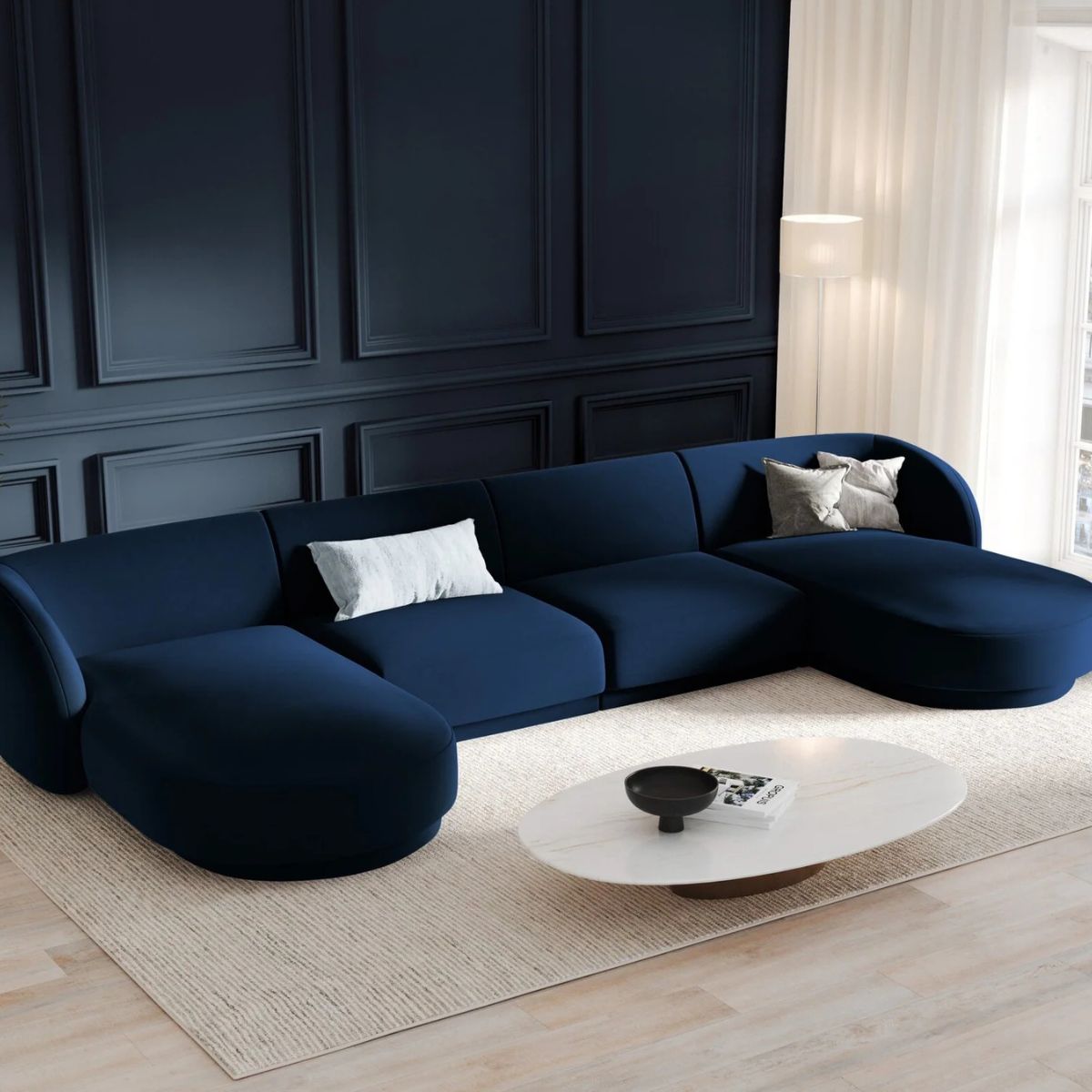 Canapé panoramique 5 places MILEY Micadoni bleu roi