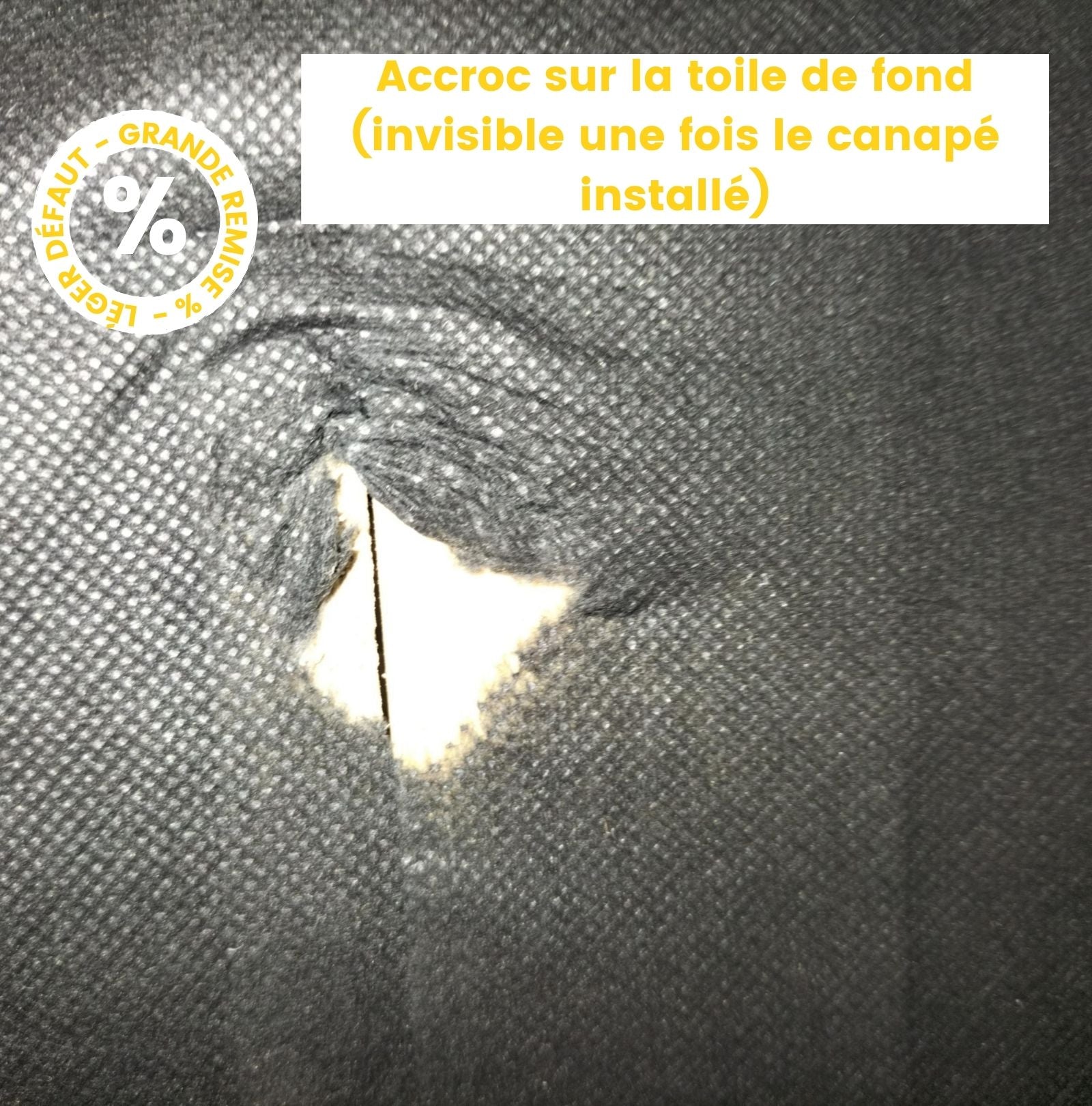 - Léger défaut: Toile de fond légèrement déchirée (invisible une fois le canapé installé)