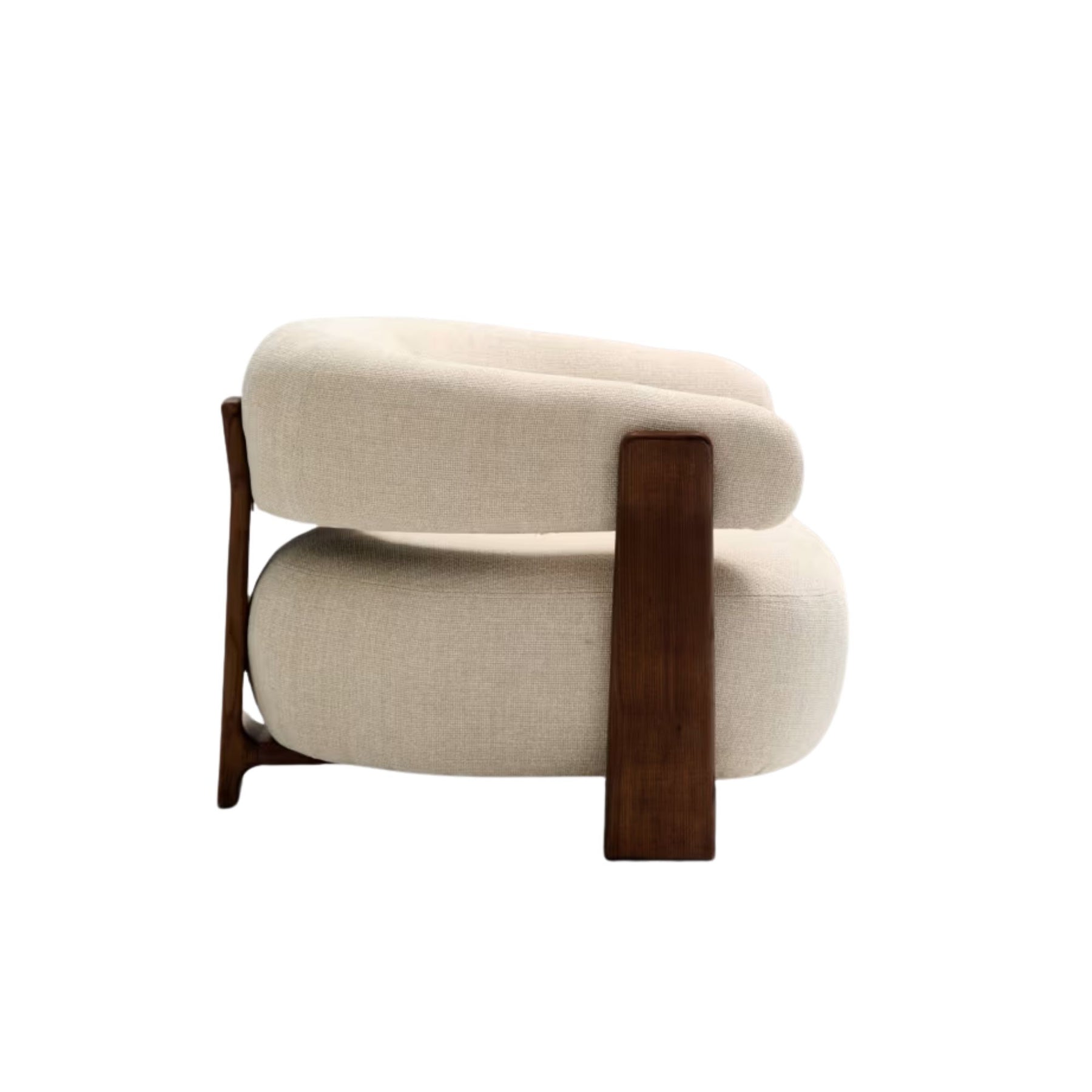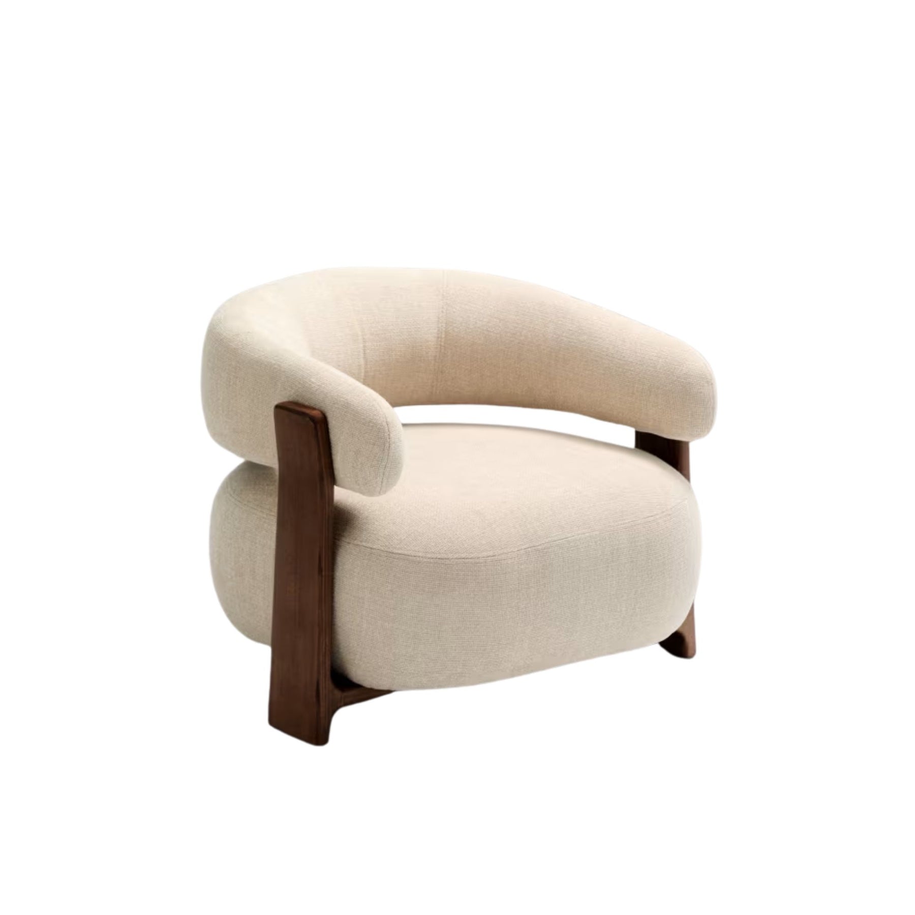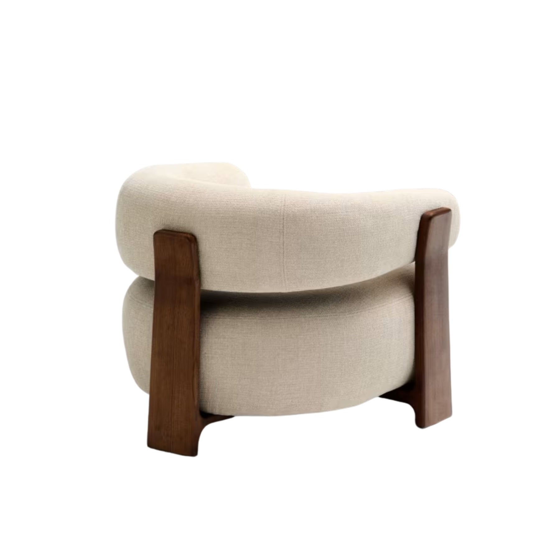 Son revêtement en tissu chenille épais beige bicolore, fabriqué à partir de polyester recyclé, offre un toucher doux et une excellente résistance à l’usage quotidien. L’assise, au confort moyen, assure un maintien équilibré, idéal pour se détendre sans s’enfoncer. Les pieds en bois de frêne finition noyer, certifiés FSC™ 100 %, apportent une touche chaleureuse et sophistiquée tout en garantissant une gestion responsable des forêts.