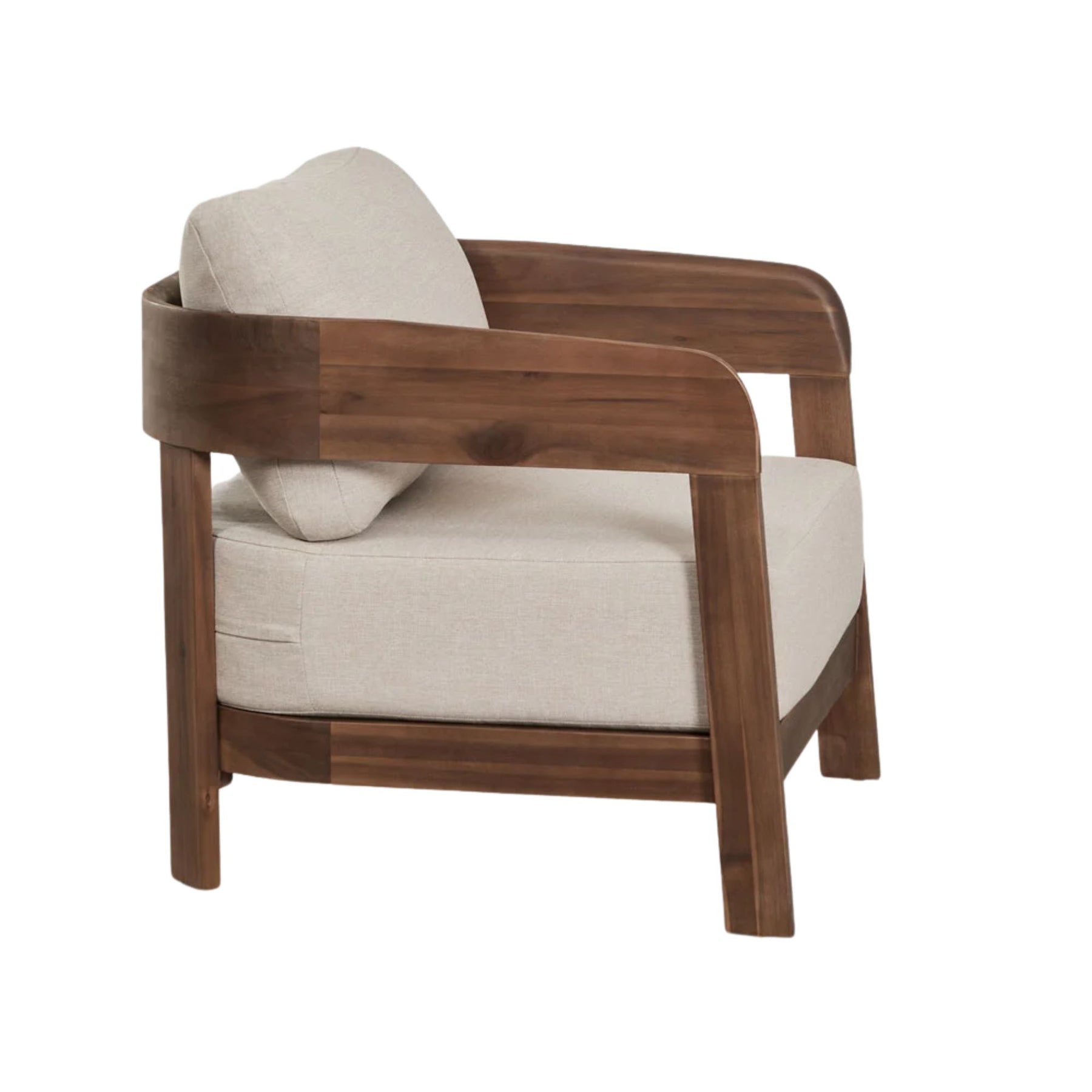Sa structure en bois d’acacia huilé diffuse une atmosphère chaleureuse et apaisante. Ce fauteuil est conçu pour créer un espace cosy, idéal pour se détendre ou lire. Les deux coussins tapissés en tissu oléfine offrent un toucher doux et une belle résistance. Le traitement déperlant du tissu le rend particulièrement adapté à un usage quotidien.