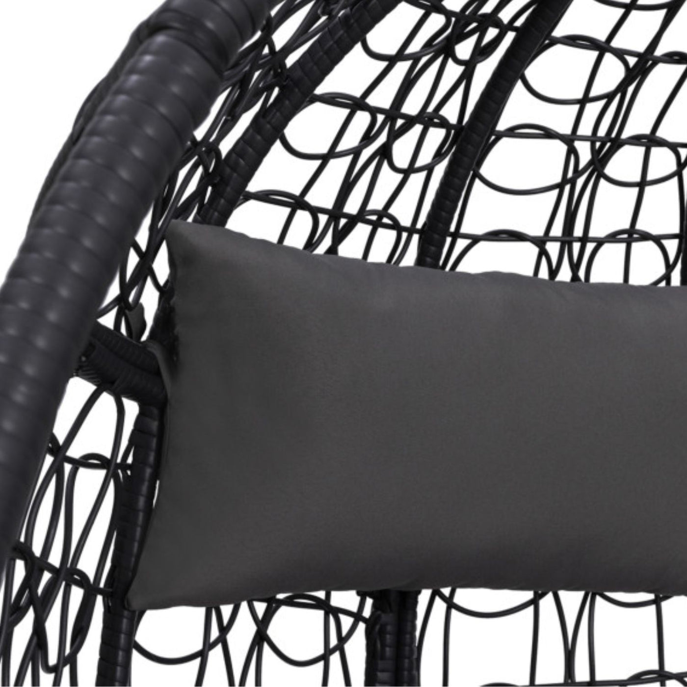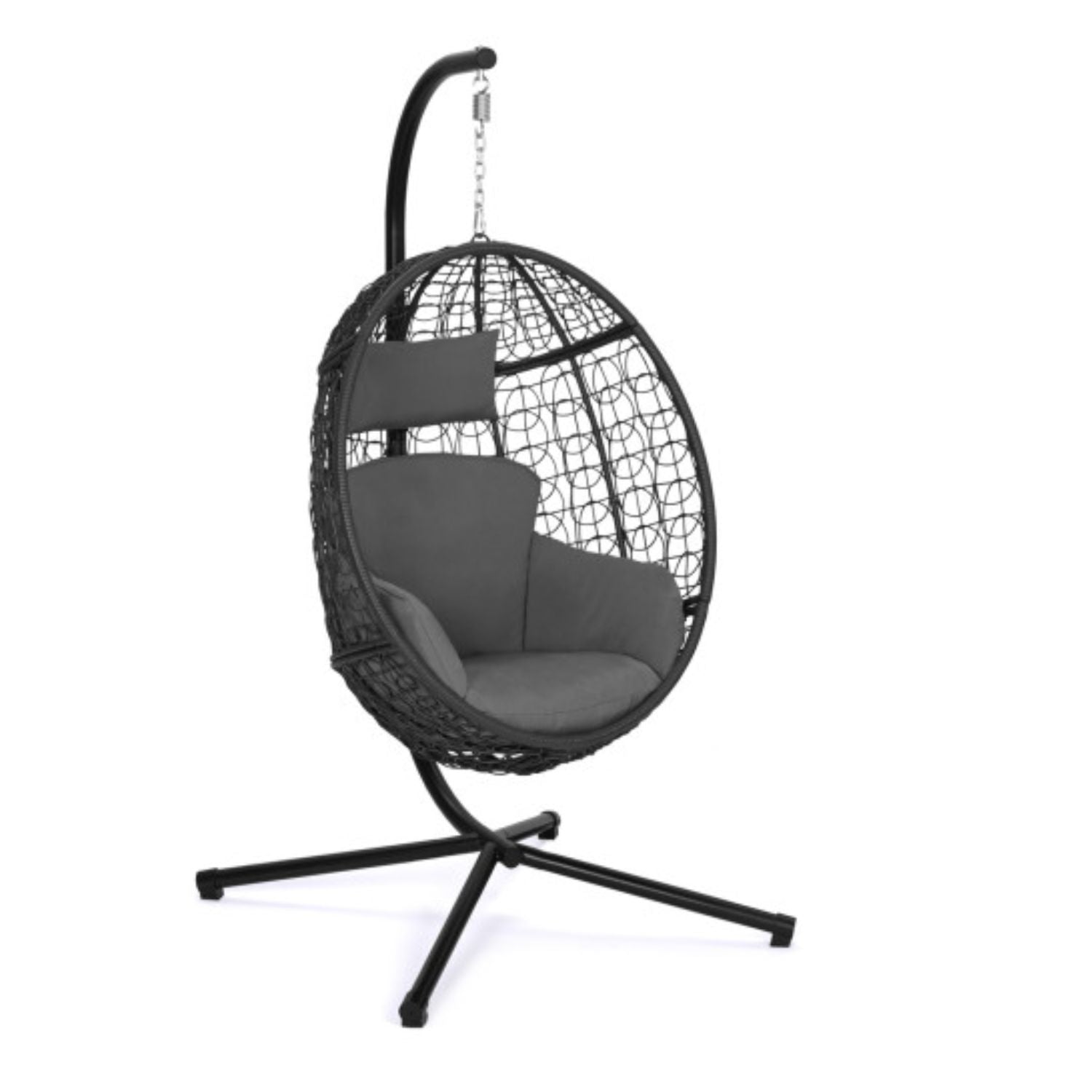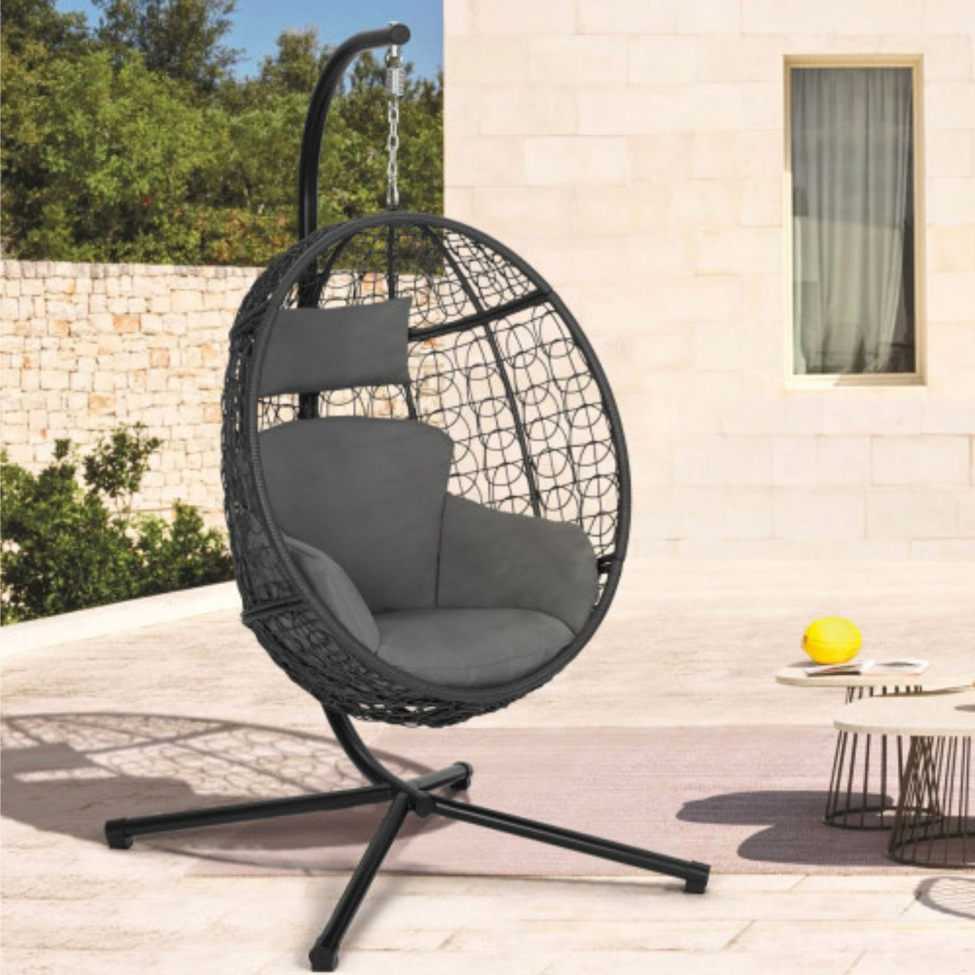 Matériaux : Structure en acier, fauteuil en polyrotin, coussin en polyester