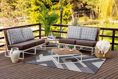 HINO Tapis d'Extérieur/Intérieur Gris/Ivoire 160x213