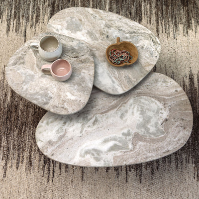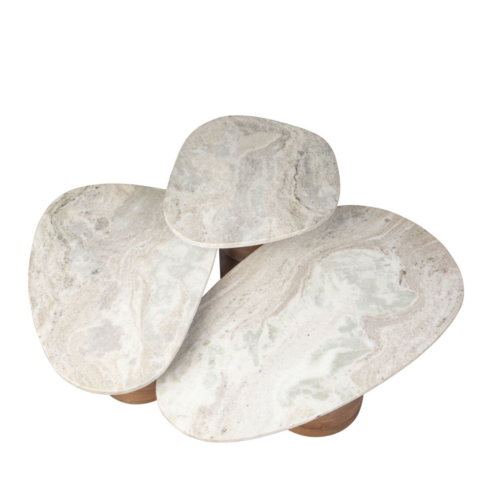Lot de 3 tables basses DRAWER Suki organiques gigognes en marbre et bois