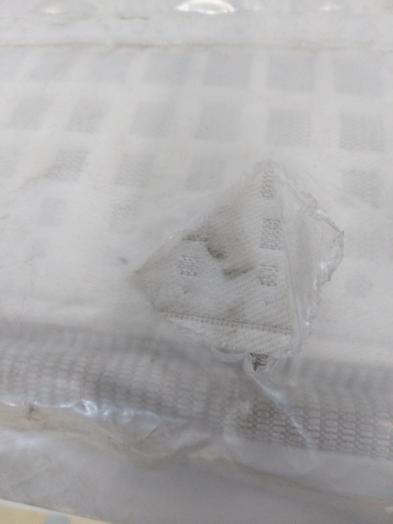 Une tache propre reste visible après nettoyage et désinfection sur le matelas (voir photos), le sommier est encore dans son emballage d'origine avec pieds inclus.