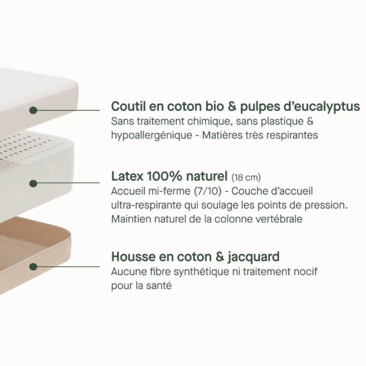 Matière âme : 18 cm de latex 100% naturel