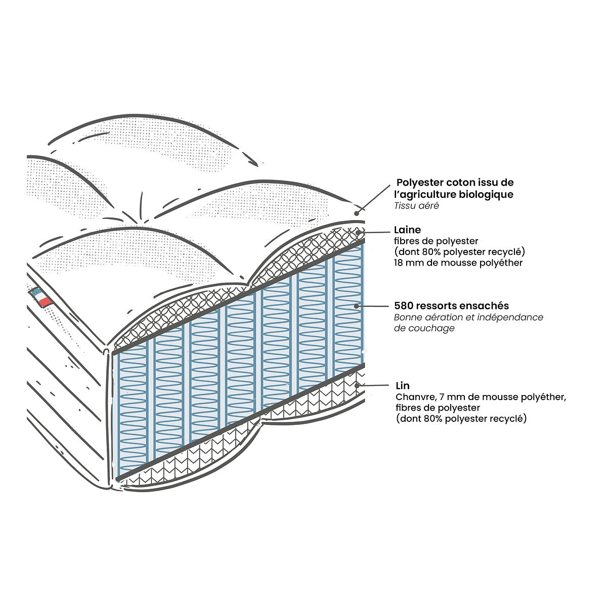 • 580 ressorts ensachés 5 zones (en 140 x 190 cm)