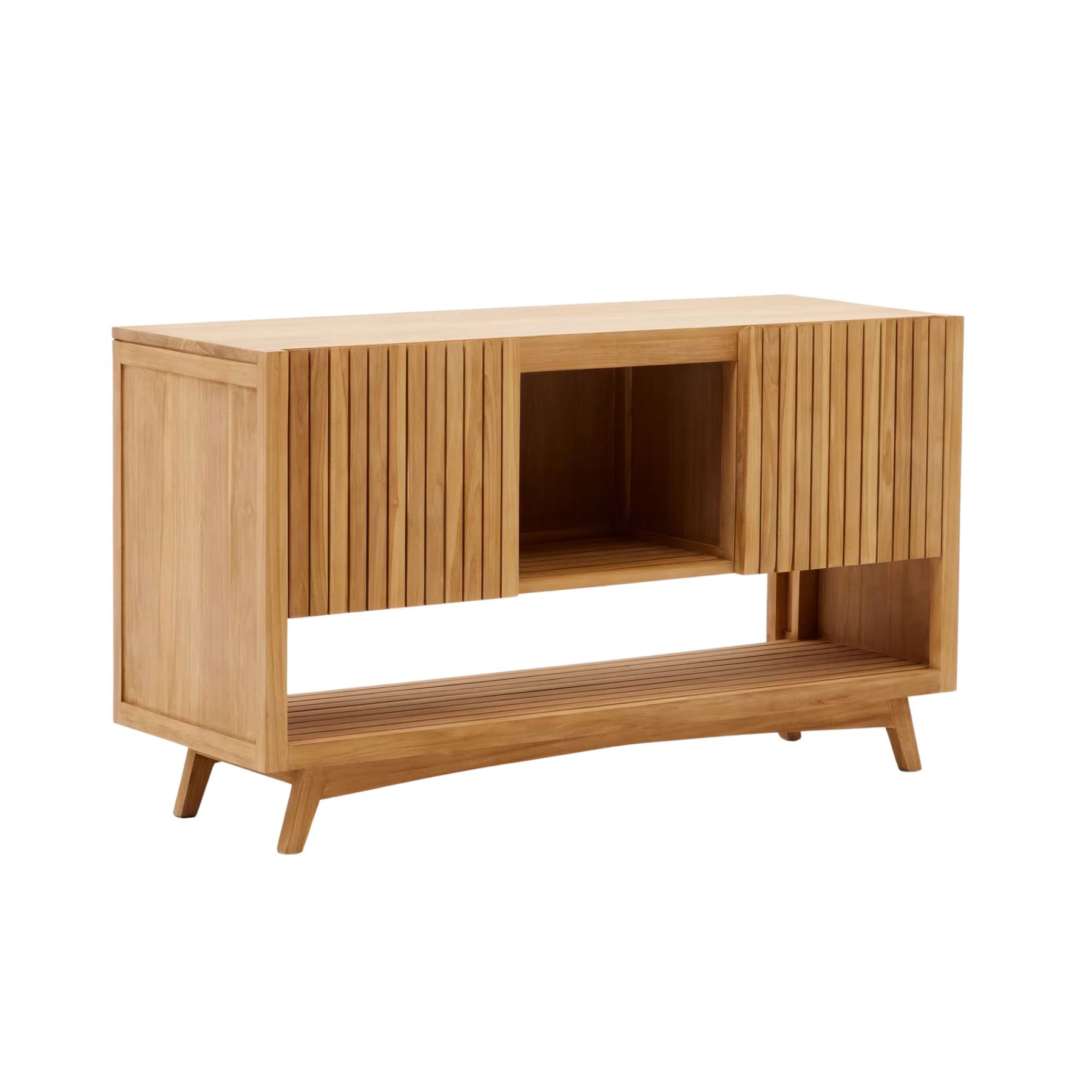 • Son bois de teck massif, naturellement résistant à l’humidité