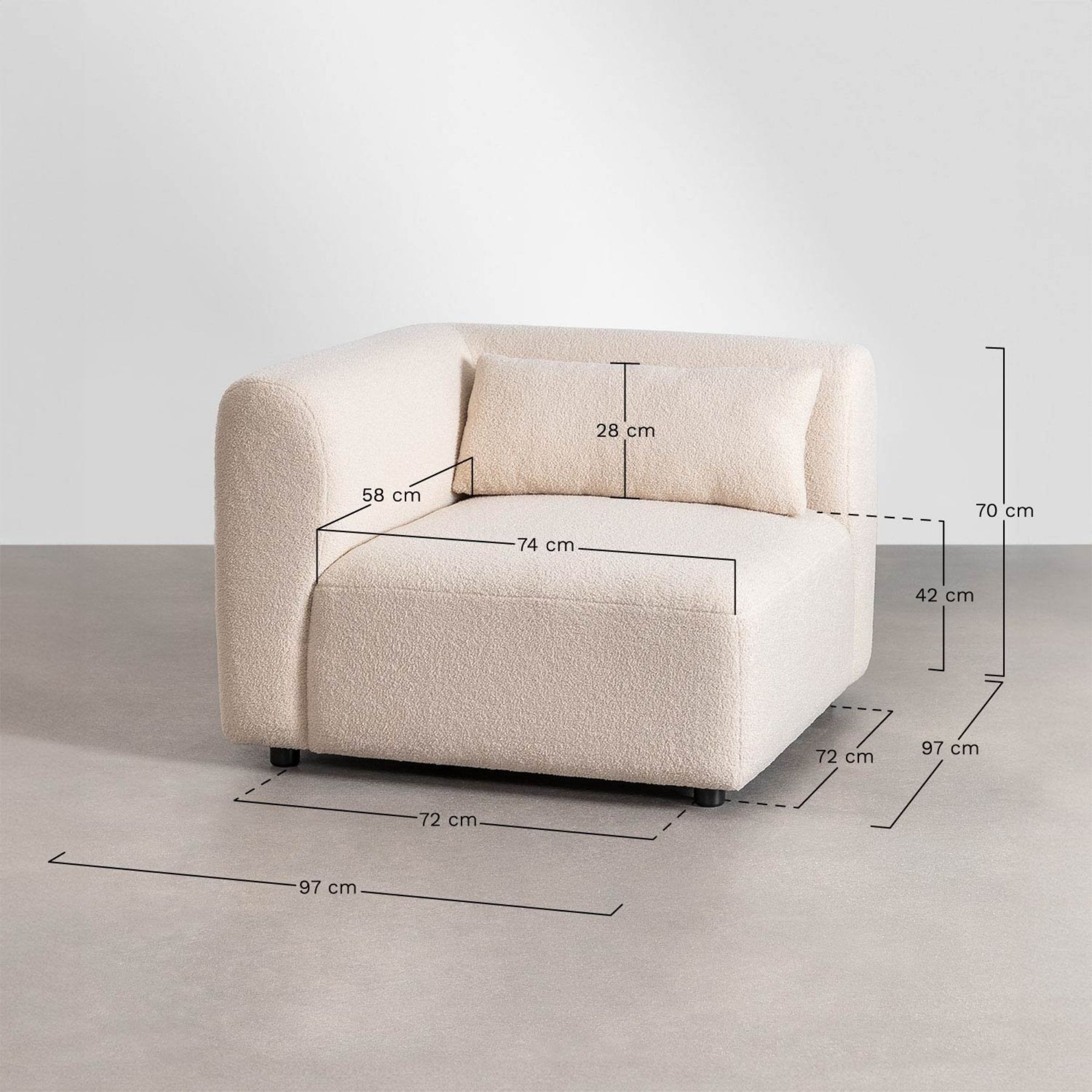 Le revêtement en tissu polyester de haute qualité offre une texture agréable au toucher, tandis que l’assise et le dossier garantissent un confort à fermeté intermédiaire, grâce à un rembourrage en mousse couplé à un système d’amortissement en zigzag durable. Les accoudoirs rembourrés et les pieds en plastique avec patins de protection complètent la construction, assurant stabilité et protection du sol. Grâce à sa teinte neutre beige lin, ce module s’harmonise facilement avec différents styles décoratifs.