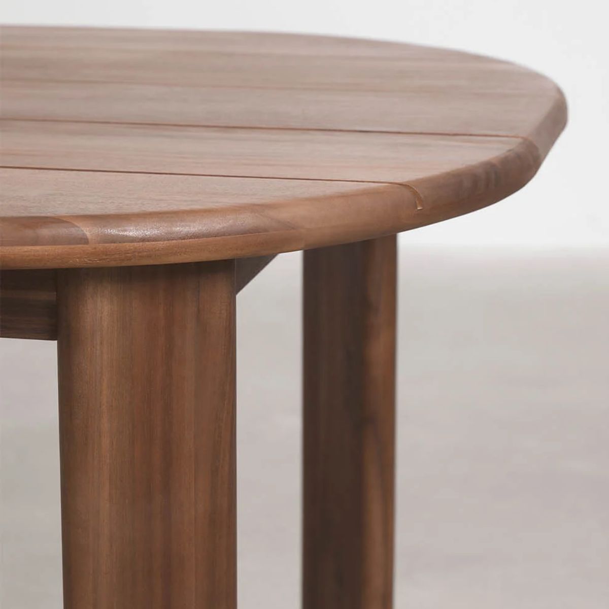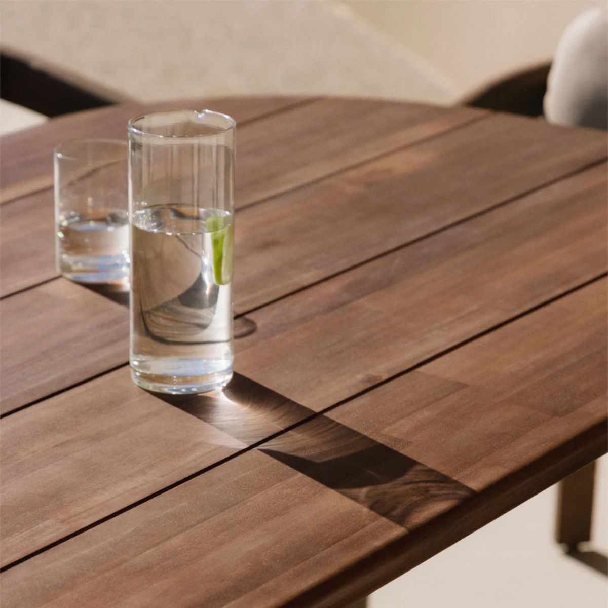Son plateau en bois d’acacia massif à la finition huilée révèle un veinage authentique et une texture chaleureuse. Sa silhouette ovale et ses pieds cylindriques discrets lui confèrent une allure aérienne et moderne, idéale pour sublimer votre terrasse ou votre jardin.