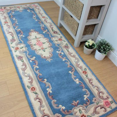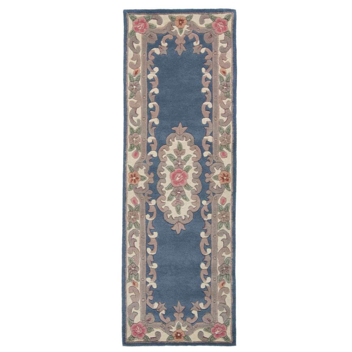 Tapis de couloir en laine royal Bleu et beige 67x210cm