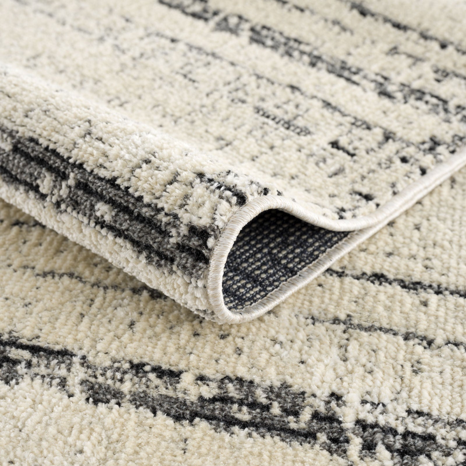 Tapis de Couloir Scandinave Moderne Ivoire/Gris Okaya
