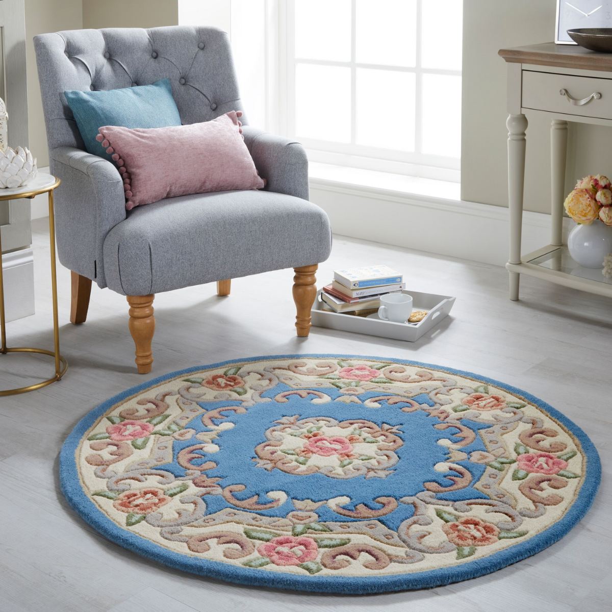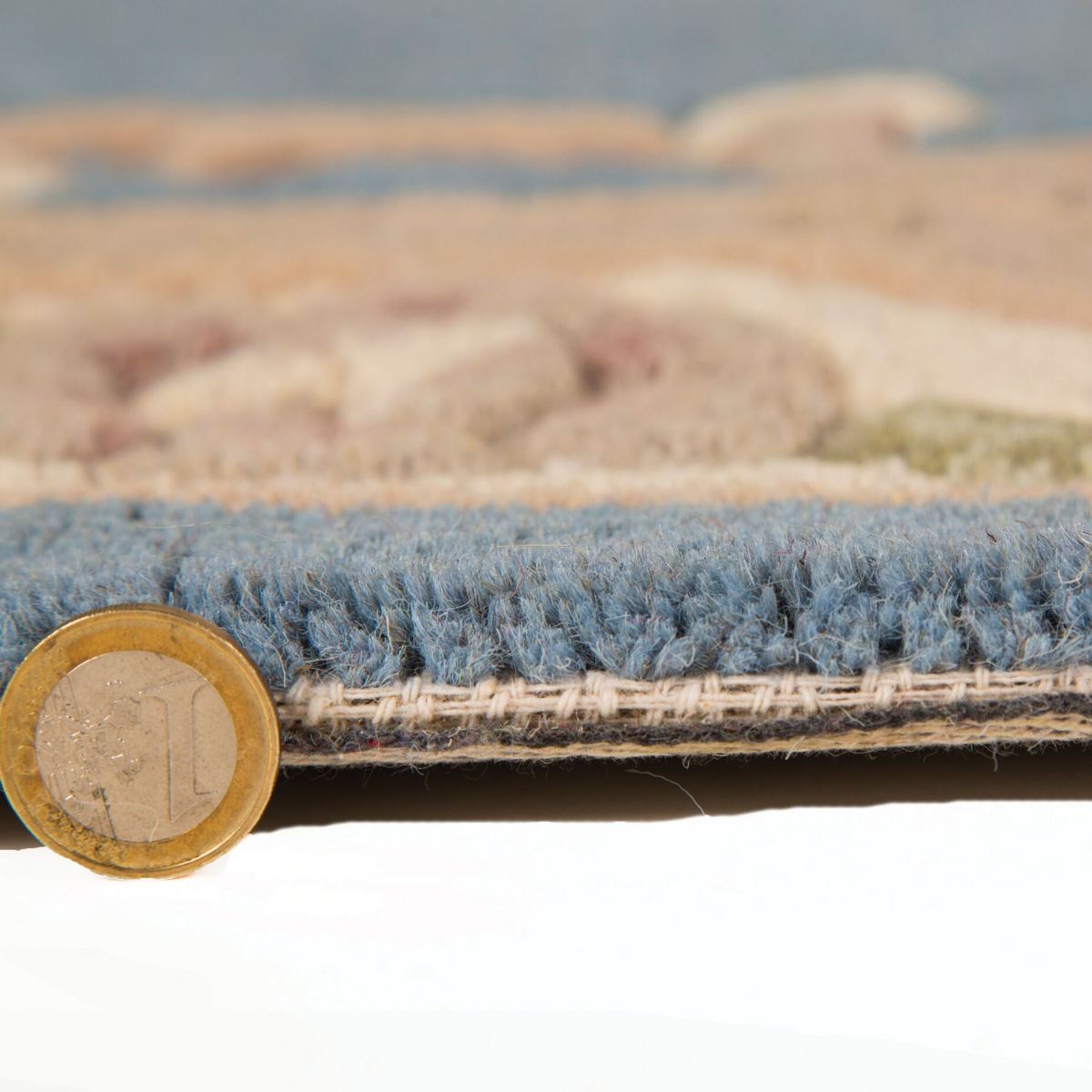 Tapis en laine royal rond Bleu et beige 120x120cm