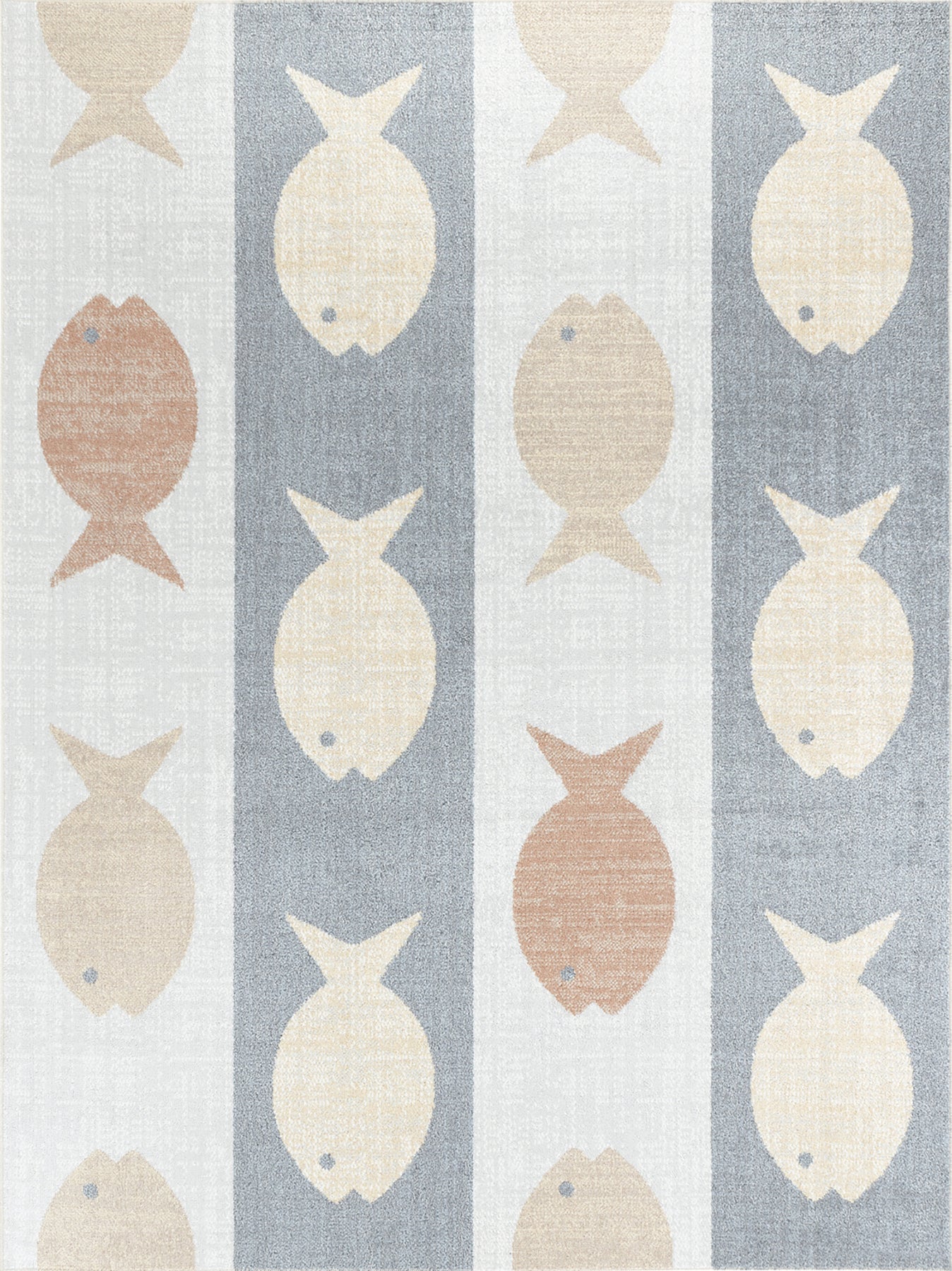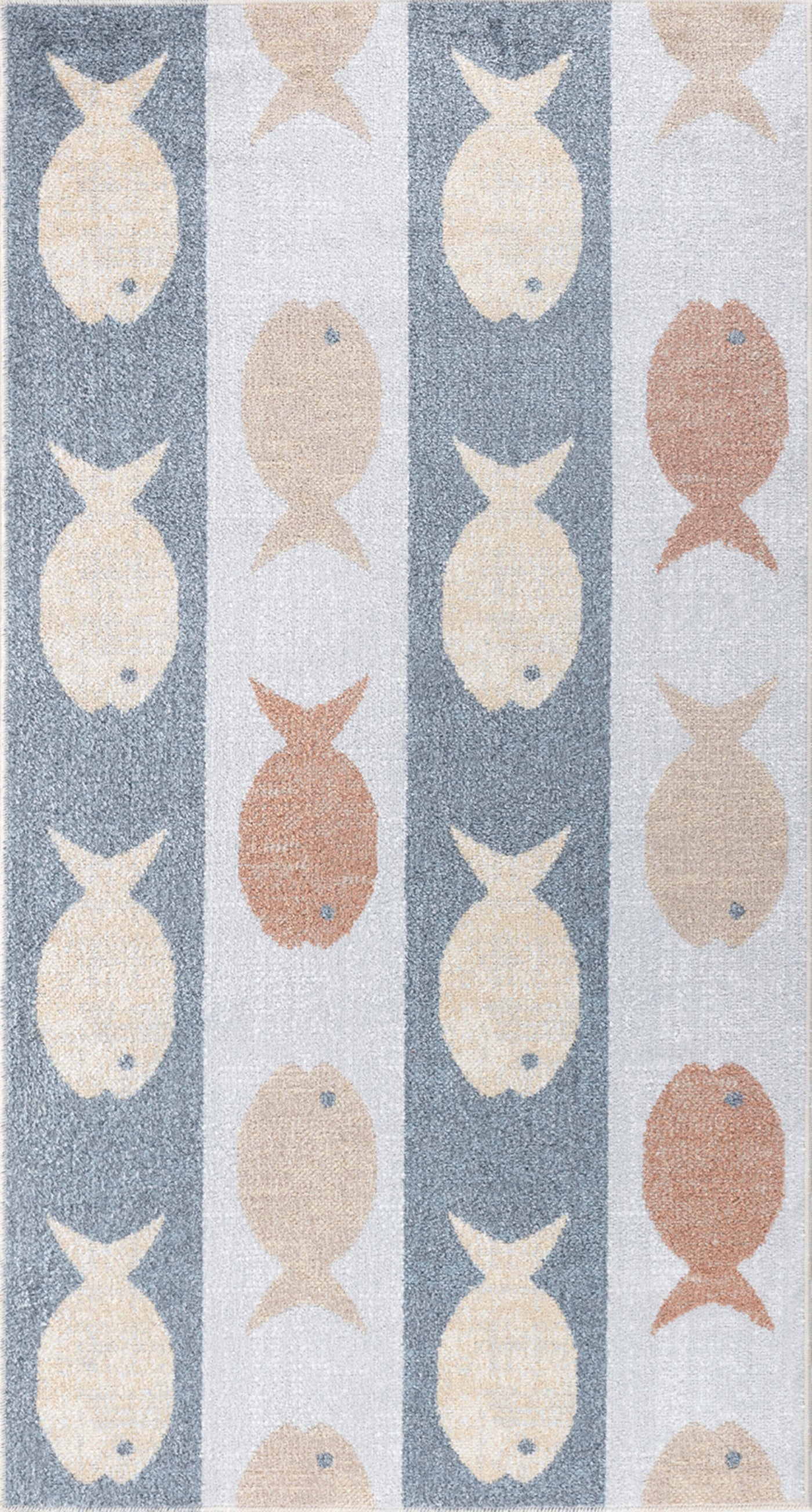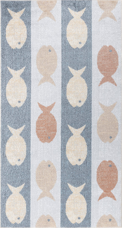 Tapis Enfant Lavable en Machine Poissons Beige/Gris/Orange Pekin